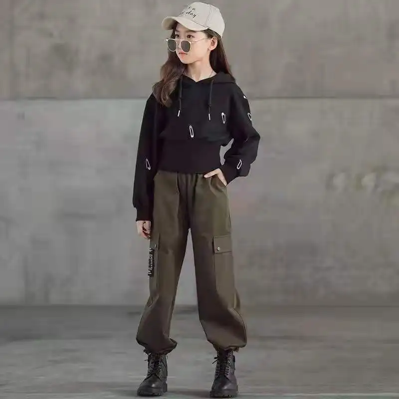 Комплекты одежды, толстовки с капюшоном для маленьких девочек, спортивная одежда, пальто для отдыха, хлопковые топы + комбинезоны, зимние детские костюмы для молодых студентов, для девочек