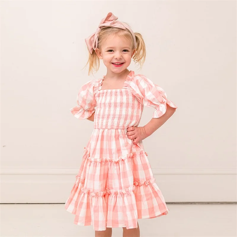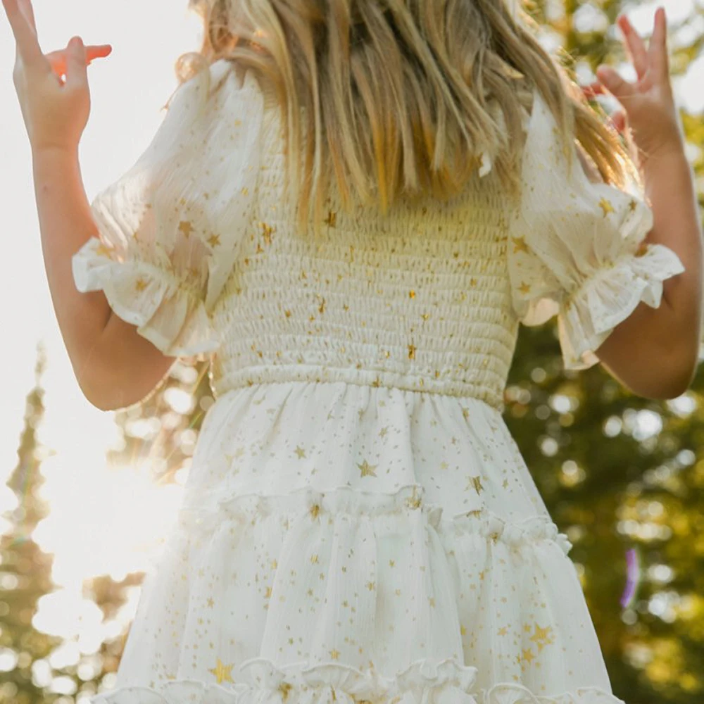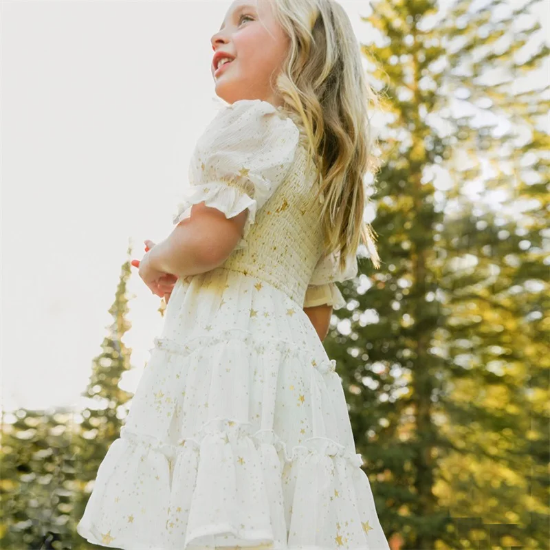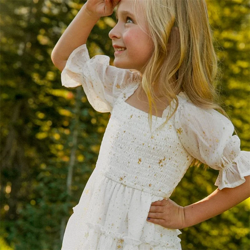Шифоновое платье для девочек 3-8 лет, с коротким рукавом