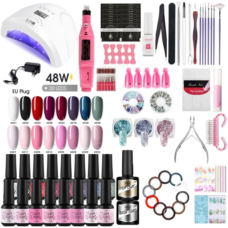 Набор гель-лаков для ногтей Rosalind, 36 Вт96 Вт Светодиодный УФ-лампа для сушки ногтей, набор инструментов для маникюра