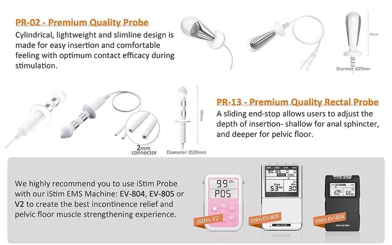 Упражнения Кегеля: Простые сжимающие и отпускающие упражнения, которые делают мышцы под маткой, мочевым пузырем и кишечником (толстой кишкой) сильнее. Помогает мужчинам и женщинам, у которых есть проблемы с протеканием мочи или контролем состояния кишечника. Зонд iStim был разработан, чтобы помочь страдающим недержанием работать с автоматическими упражнениями kegel. Соединяя зонд iStim с стимулятором TENS/EMS, начнется автоматическое Упражнение kegel!