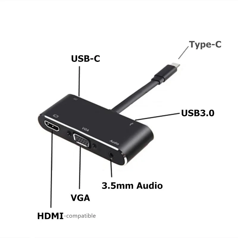 Type 4Type-C to HDMI/VGA/Type-c/USB 3.0/Aux