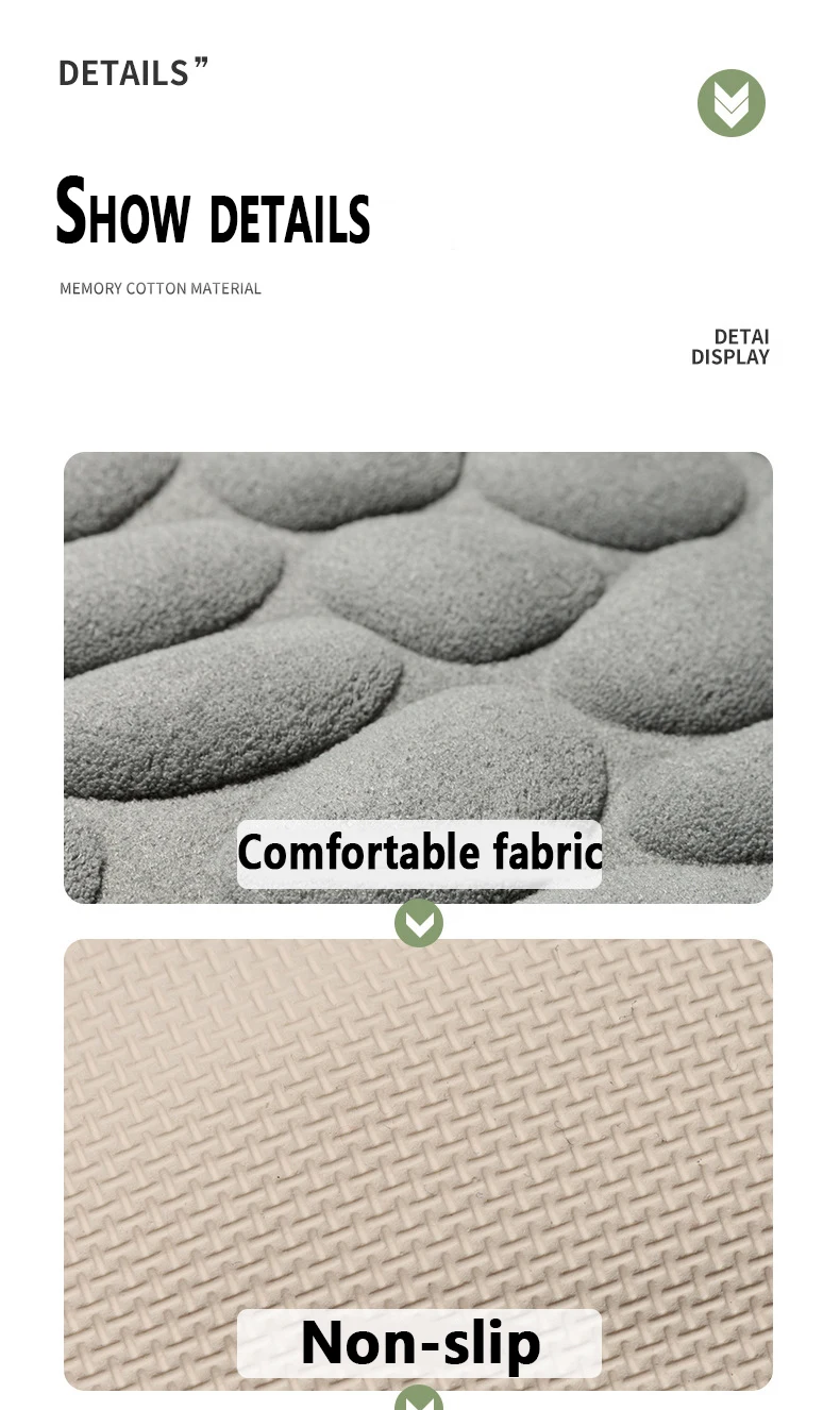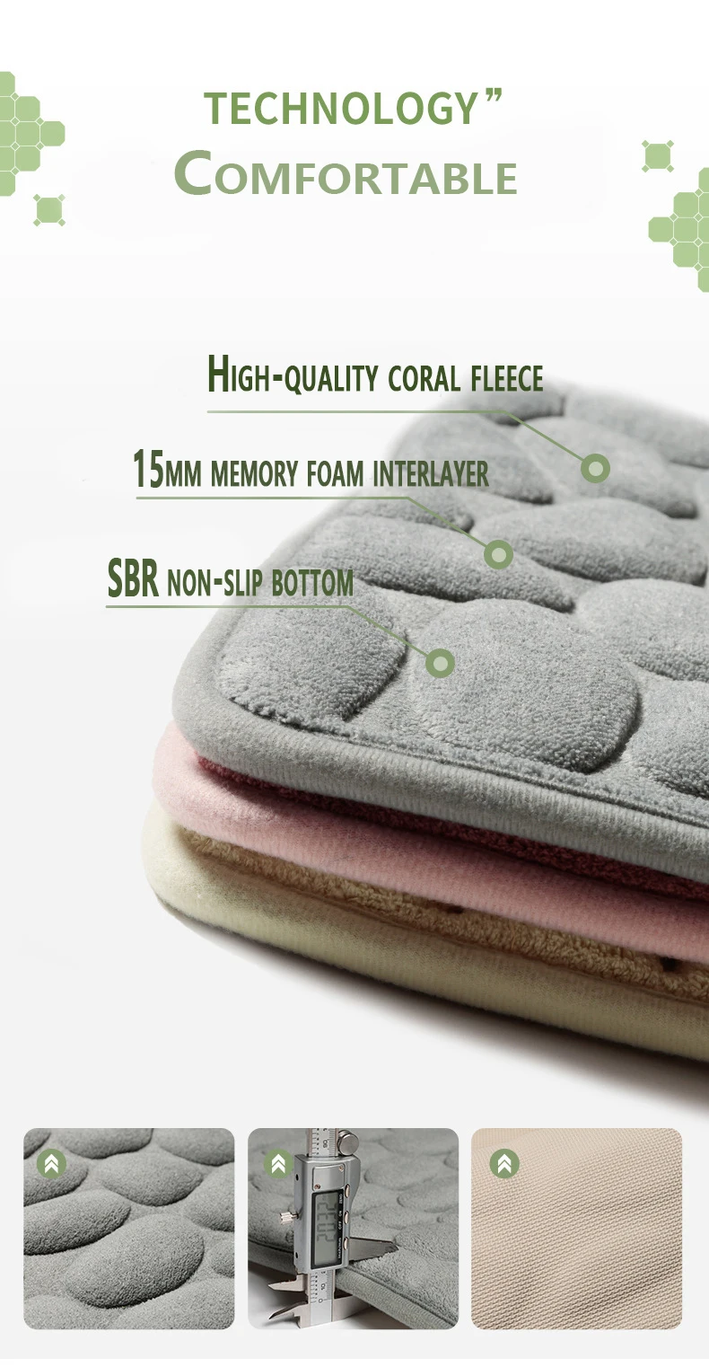 Поверхность изготовлена из кораллового флиса, мягкая и удобная, нескользящая латексная подошва, подкладка из пены с эффектом памяти, пена с эффектом памяти отличается от других ковриков для ванной, что более легко чистить и будет прессовывать форму своего индивидуального тела, поэтому она чувствует себя более удобной и мягкой.
