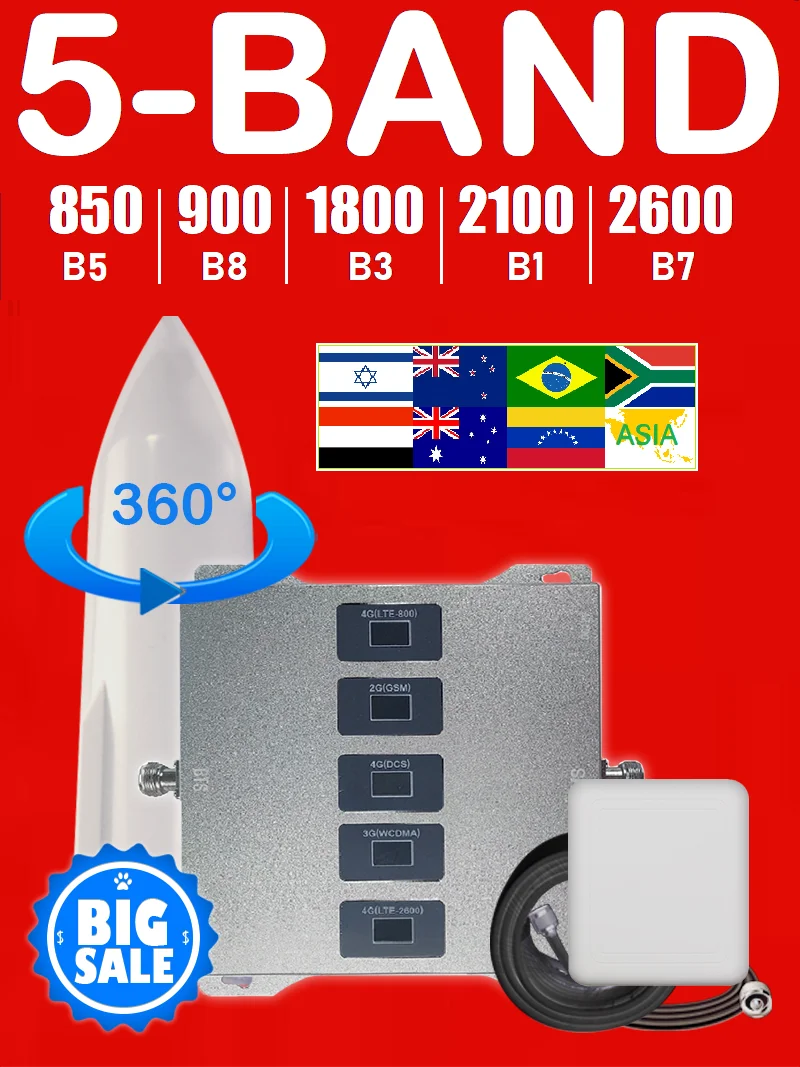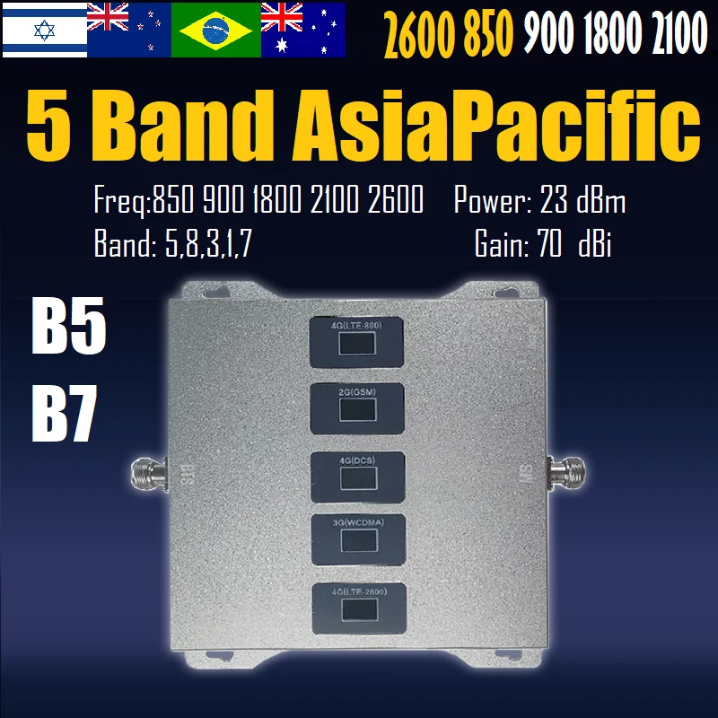 Пятиполосный усилитель сотовой связи, усилитель сигнала LTE, репитер 850 900 1800 2100 2600 МГц, диапазон 5 8 3 1 7, Израиль, Нигерия, Латинская Америка