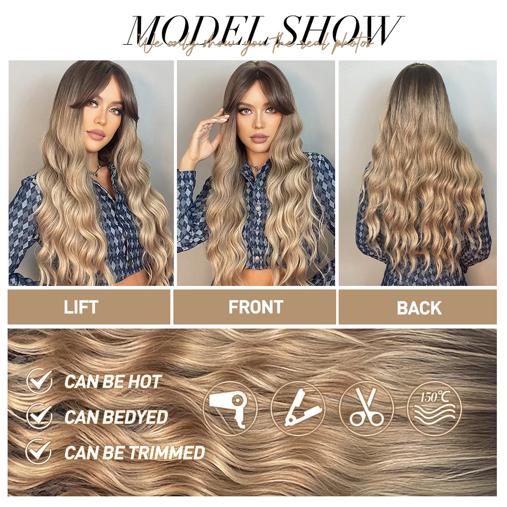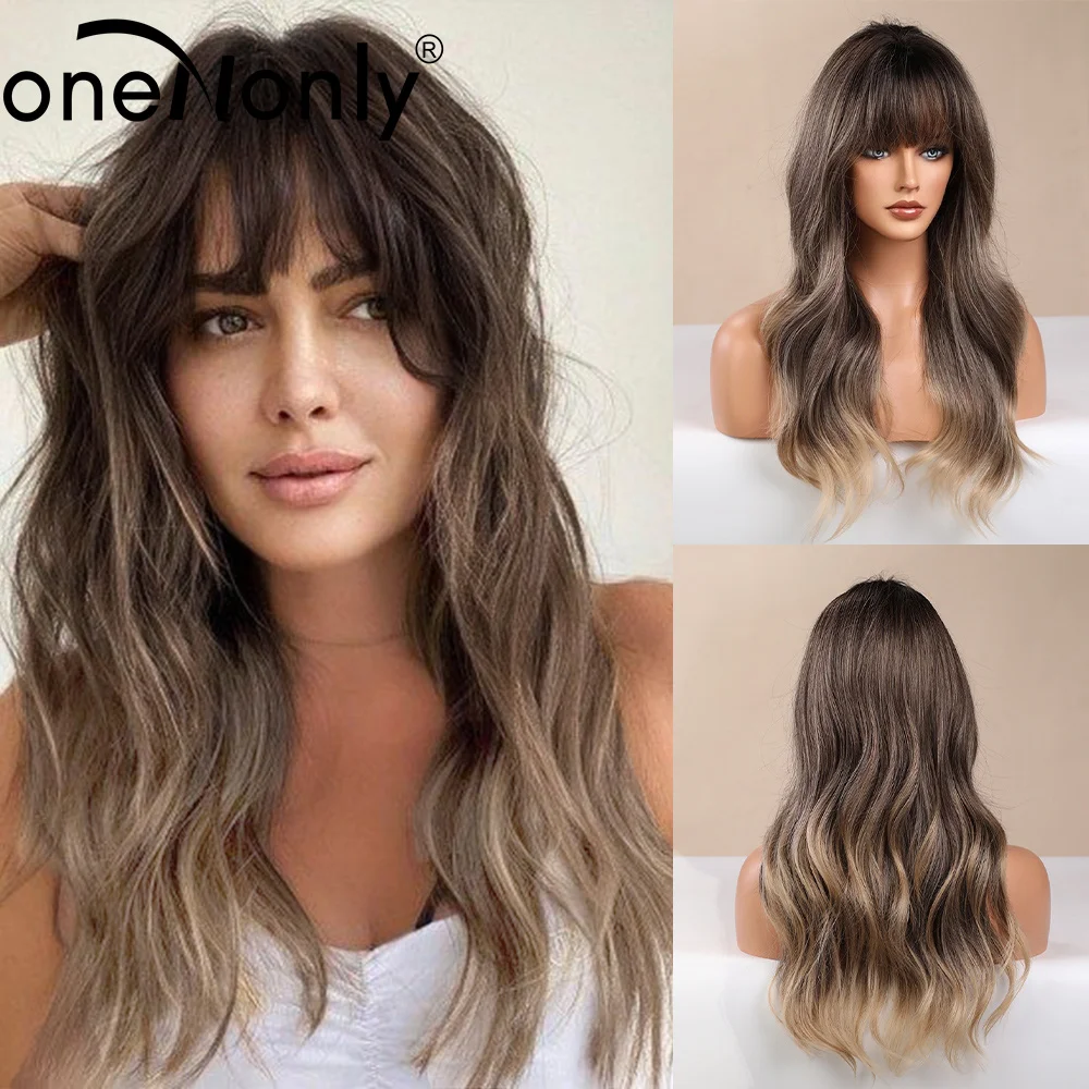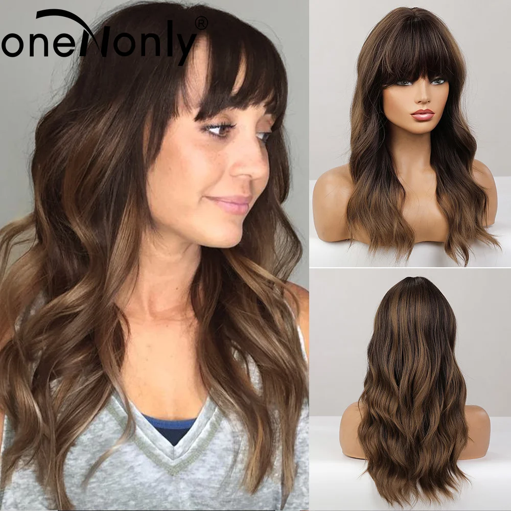 Коричневый парик oneNonly, длинные волнистые искусственные челки, натуральные волосы, синтетический парик для повседневвечерние, Термостойкое волокно