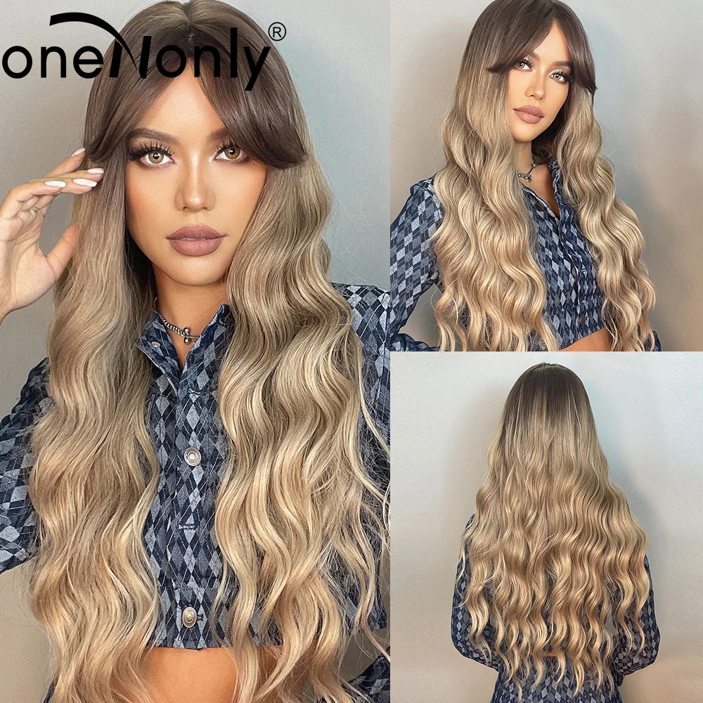 OneNonly коричневый блонд парик Длинные волны синтетические парики ...