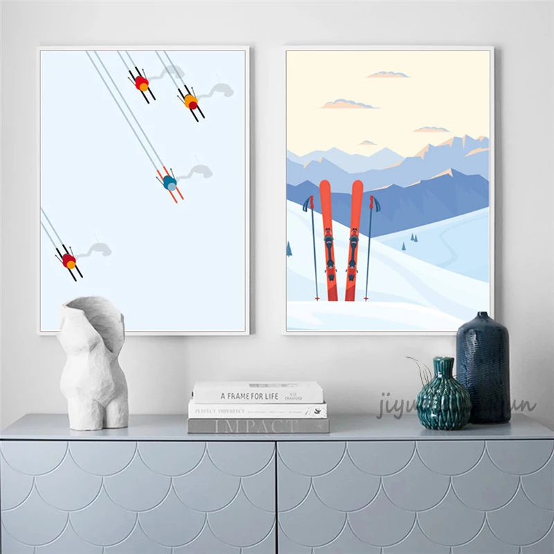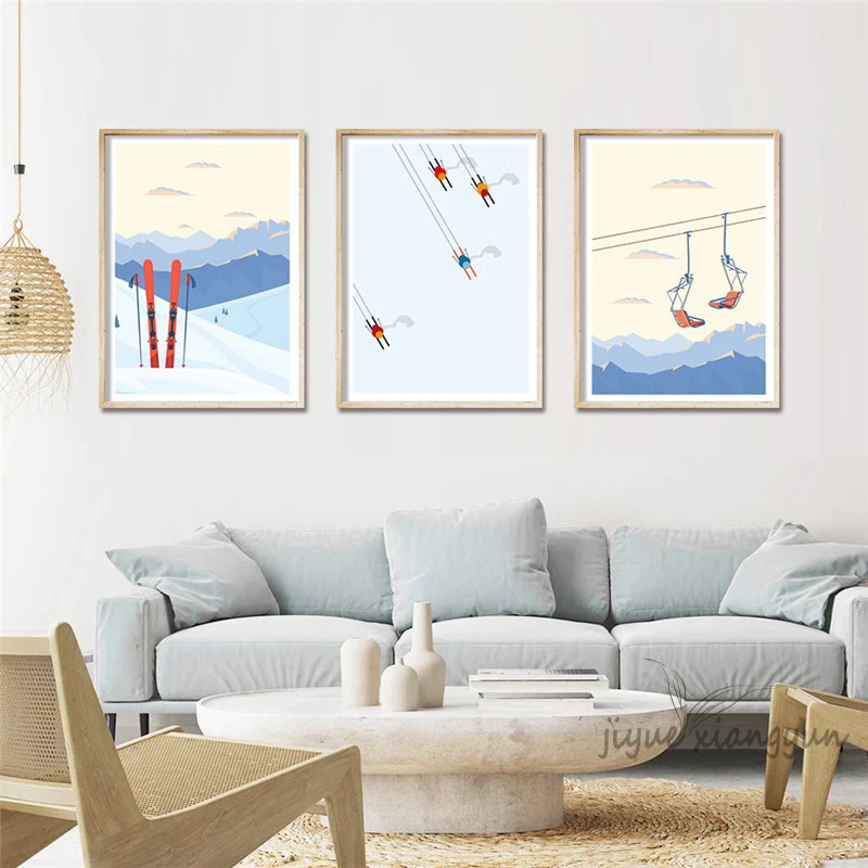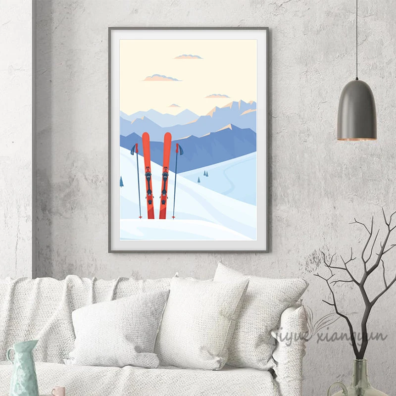 Винтажные настенные постеры в скандинавском стиле для катания на лыжах, сноуборде, сноуборде, горе, картина на стену с белым снегом, Картина на холсте для гостиной, домашний декор