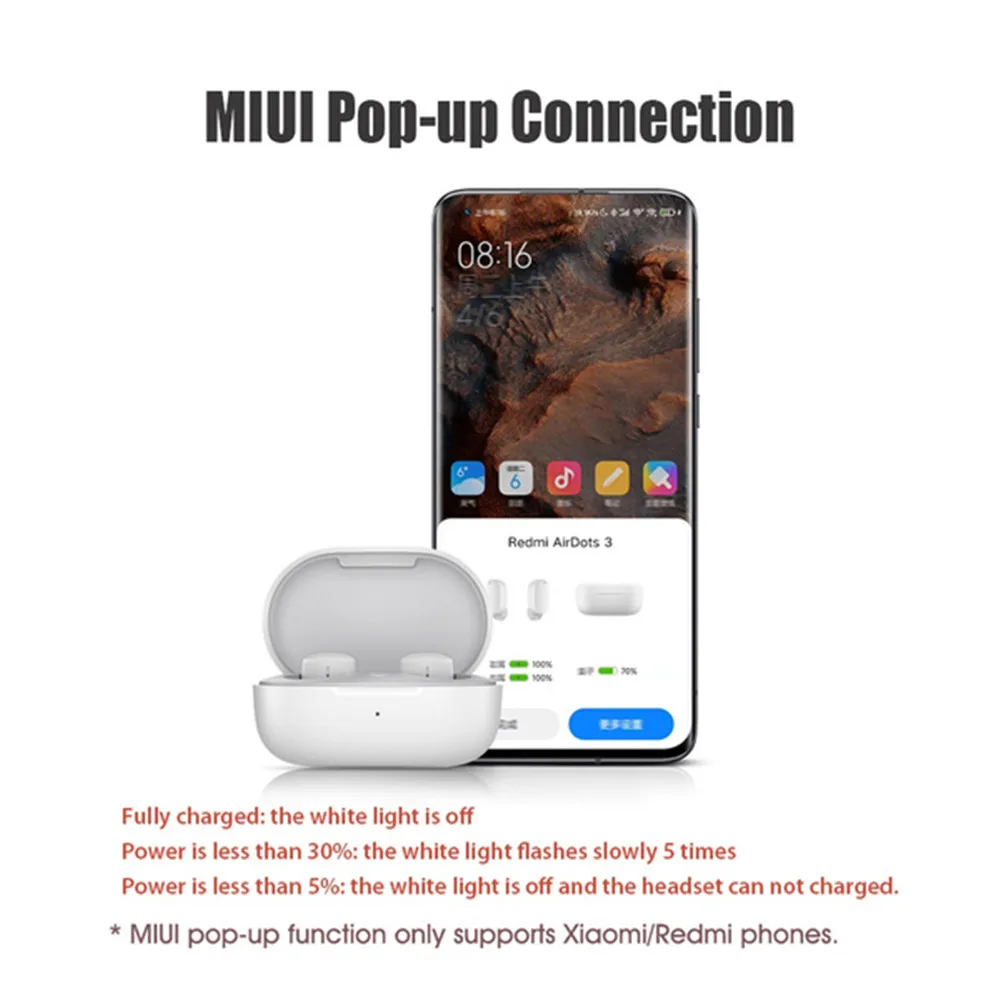 * Всплывающая функция MIUI поддерживает только телефоны Xiaomi/Redmi.1. Описание:Беспроводные наушники Redmi Airdots 3 TWS BT5.2, вкладыши MIUI, всплывающее соединение/сенсорное управление/шумоподавление/IPX4 водонепроницаемый/быстрая зарядка Type-c/600 мА · ч, зарядное устройство, гарнитура с микрофоном совместимость с Andriod iOS Windows2.Особенности:-Улучшенный чип BT 5,2 обеспечивает низкую задержку, быстрое сопряжение и быструю передачу.-Функция всплывающего подключения MIUI, мгновенно Подключите наушники к устройству с помощью быстрой пары.-HD APTX Адаптивное декодирование аудио, супер низкая задержка, чтобы держать вас в синхронизации с действием на экране.-С зарядный чехол 600 мАч, это может быть даже в аварийный источник питания для зарядки для мобильные телефоны.-Светильник индикатора питания будет отображать состояние мощности, которое является четким с первого взгляда, избегая конфуза выхода из строя.-Поддержка голосового ассистента Xiaoai/Siri и интеллектуального управления приложением Xiaoai.-Интеллектуальное управление сенсором отпечатков пальцев более удобно в использовании.-Интеллектуальная функция шумоподавления позволяет поддерживать четкий разговор во время звонка.-Интеллектуальная Совместимость: Поддержка всех BT мобильных телефонов, планшетов, ноутбуков.3. Спецификация:Название товара: Redmi Airdots 3Цвет: синий/розовый (на выбор)Версия BT: BT5.2Беспроводной диапазон: ≤ 10 м (без препятствий)Зарядное устройство: 600 мАчАккумулятор наушника: 43 мА · ч (на наушник)Протокол поддержки: HFP/A2DP/HSP/AVRCP/BLEПорт зарядки: Type-CСнижение уровня шума: ДаГолосовой помощник: поддержка (Xiaoai/Siri)Одиночный или бинауральный: двусторонний стереоСенсорное управление:Дважды нажмите на правый наушник для воспроизведения/паузы музыкиДвойное нажатие на Левый наушник для пробуждения голосового ассистентаНажмите многофункциональную клавишу, чтобы ответить/повесить вызовХарактеристики: всплывающее соединение MIUI/сенсорное управление/голосовой помощник/вызов HD/быстрая зарядкаРазмер продукта: 6,5*4,2*3,2 см (внешний аккумулятор) + 2,8*1,6*2,1 см (наушники)Вес изделия: 41,8 г (Мощность банка) + 4,6 г (наушники)4. Примечание:Возможна небольшая разница в измерениях вручную.Цвет товара на фотографиях может слегка отличаться на разных мониторах компьютера так как мониторы откалиброваны по-разному.* Пожалуйста, Не погружайте наушники в воду, чтобы предотвратить повреждение, спасибо.5.Посылка:1 * пара наушников1 * внешний аккумулятор2 * Заушник