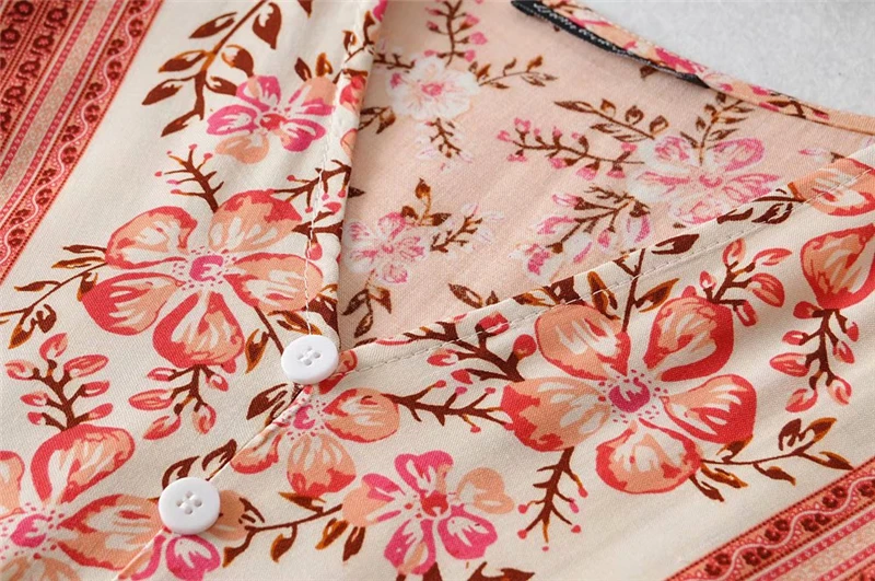 Блузка женская в стиле бохо, Винтажный Розовый Топ с цветочным прин...