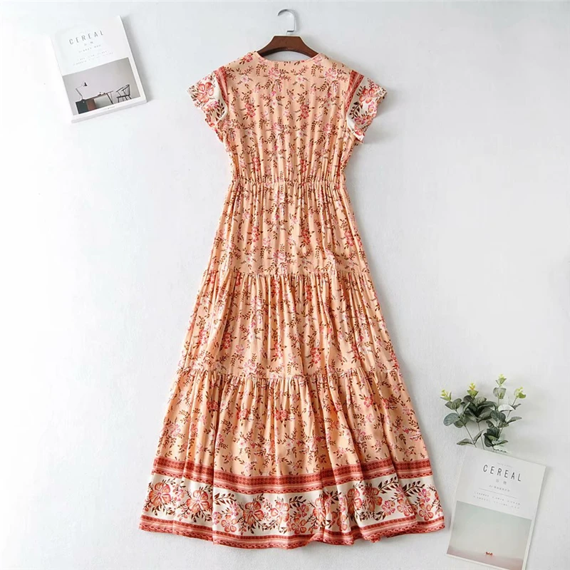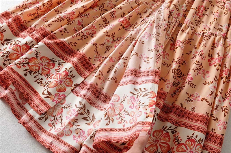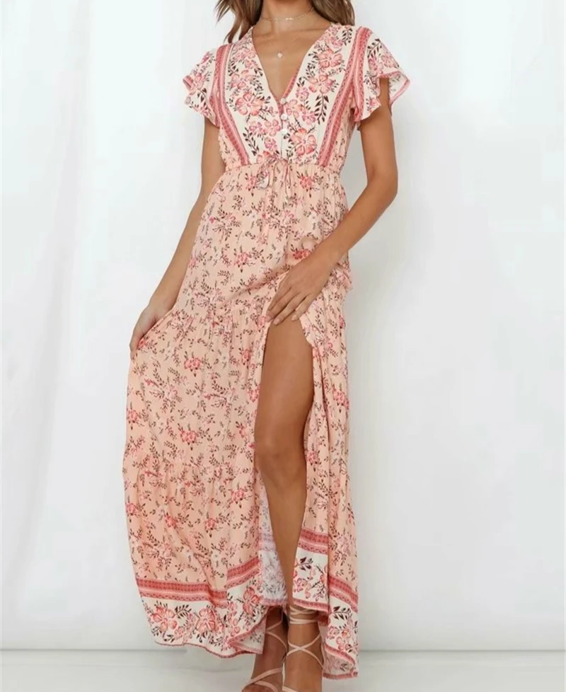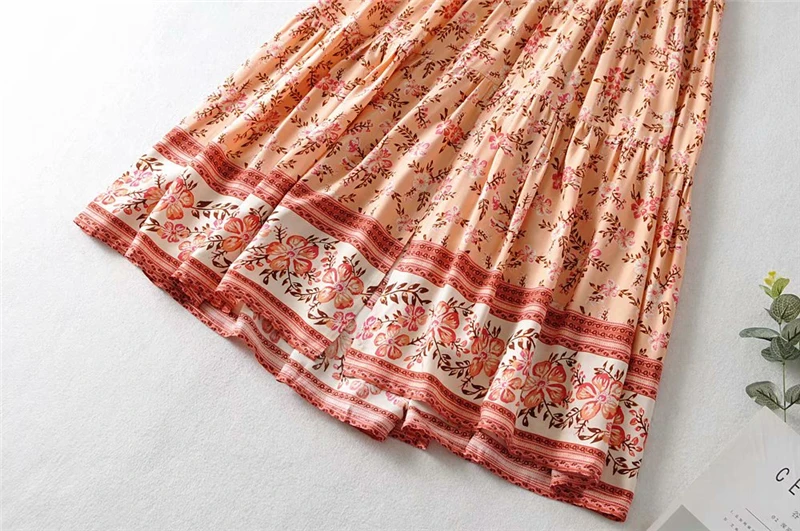 Платье в стиле бохо из вискозы и хлопка, розовое Макси-платье с цветочным принтом в стиле хиппи, богемные платья, женские праздничные пляжные повседневные платья для женщин