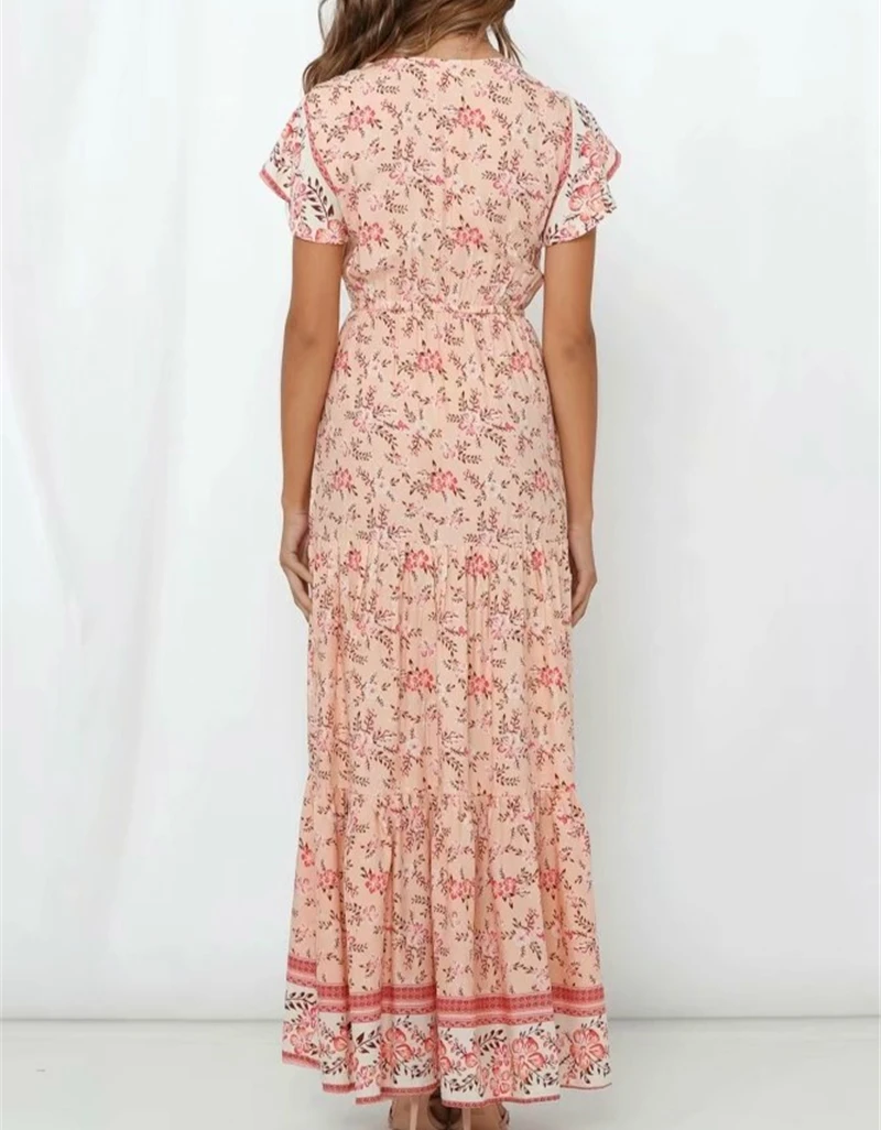 Женское богемное Платье макси с коротким рукавом и V-образным вырезом