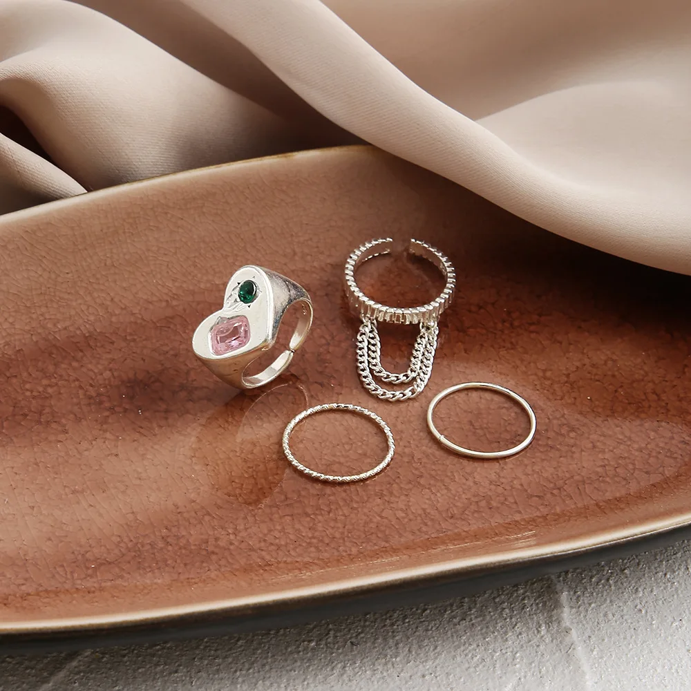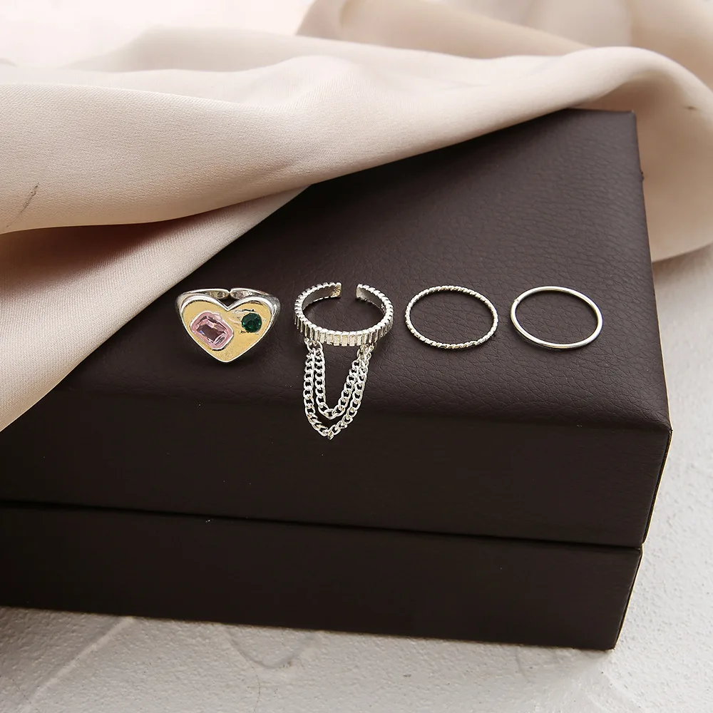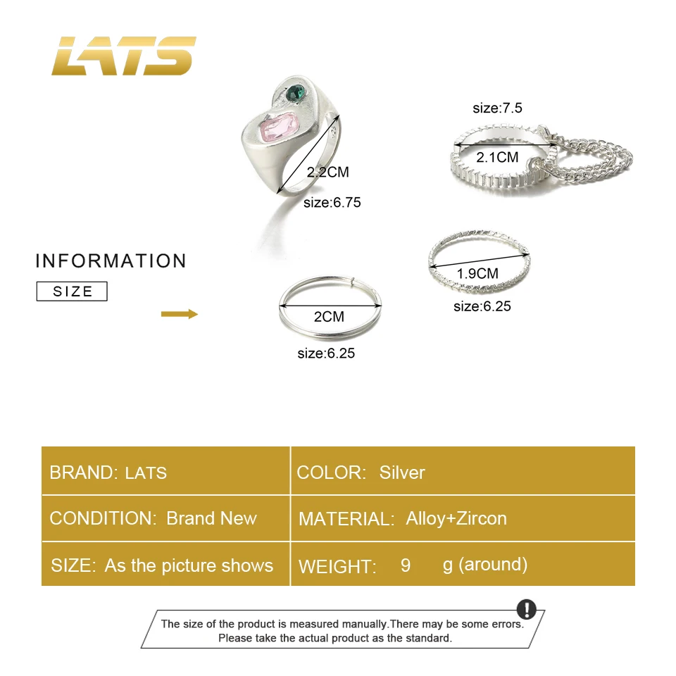 LATS тренд хип-хоп серебряный цвет ЛЮБОВЬ цепи кольца для женщин панк циркон соединение указательный палец кольцо набор 2022 мода ювелирные изделия оптом