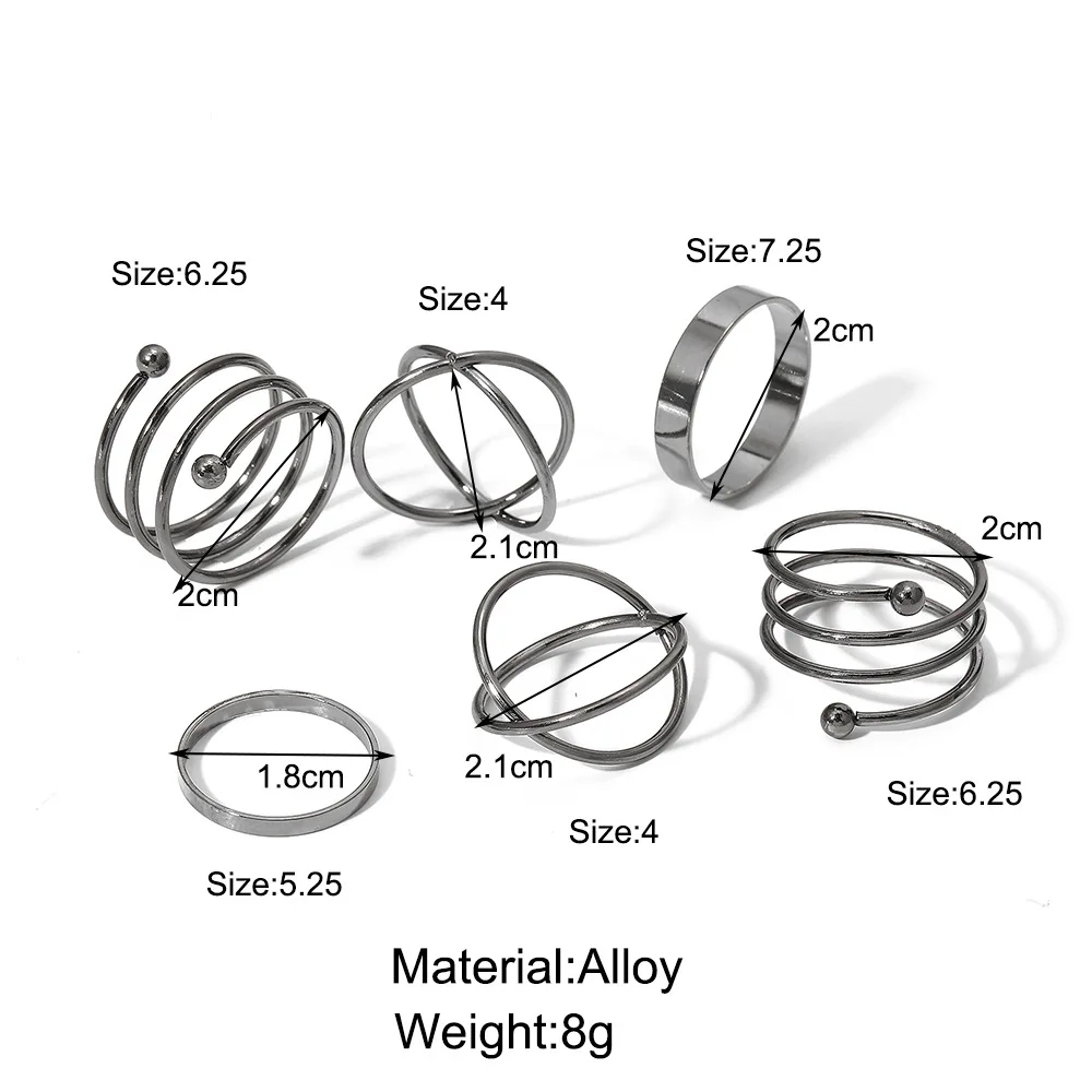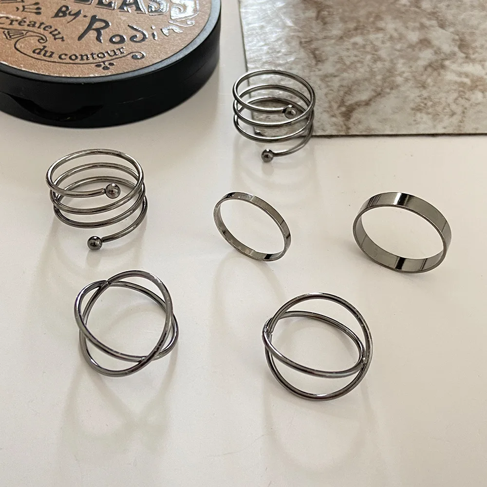 7 шт. набор колец из металлического сплава, открытое круглое кольцо на палец для женщин и девушек, вечерние свадебные подарки, модные ювелирные изделия