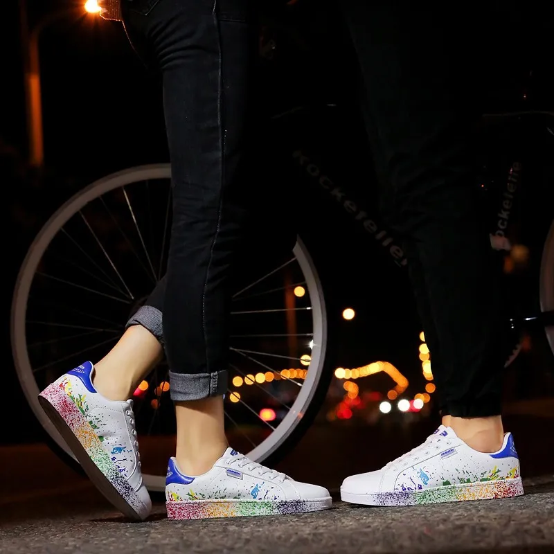 Модные мужские повседневные туфли граффити белые кроссовки для скей...