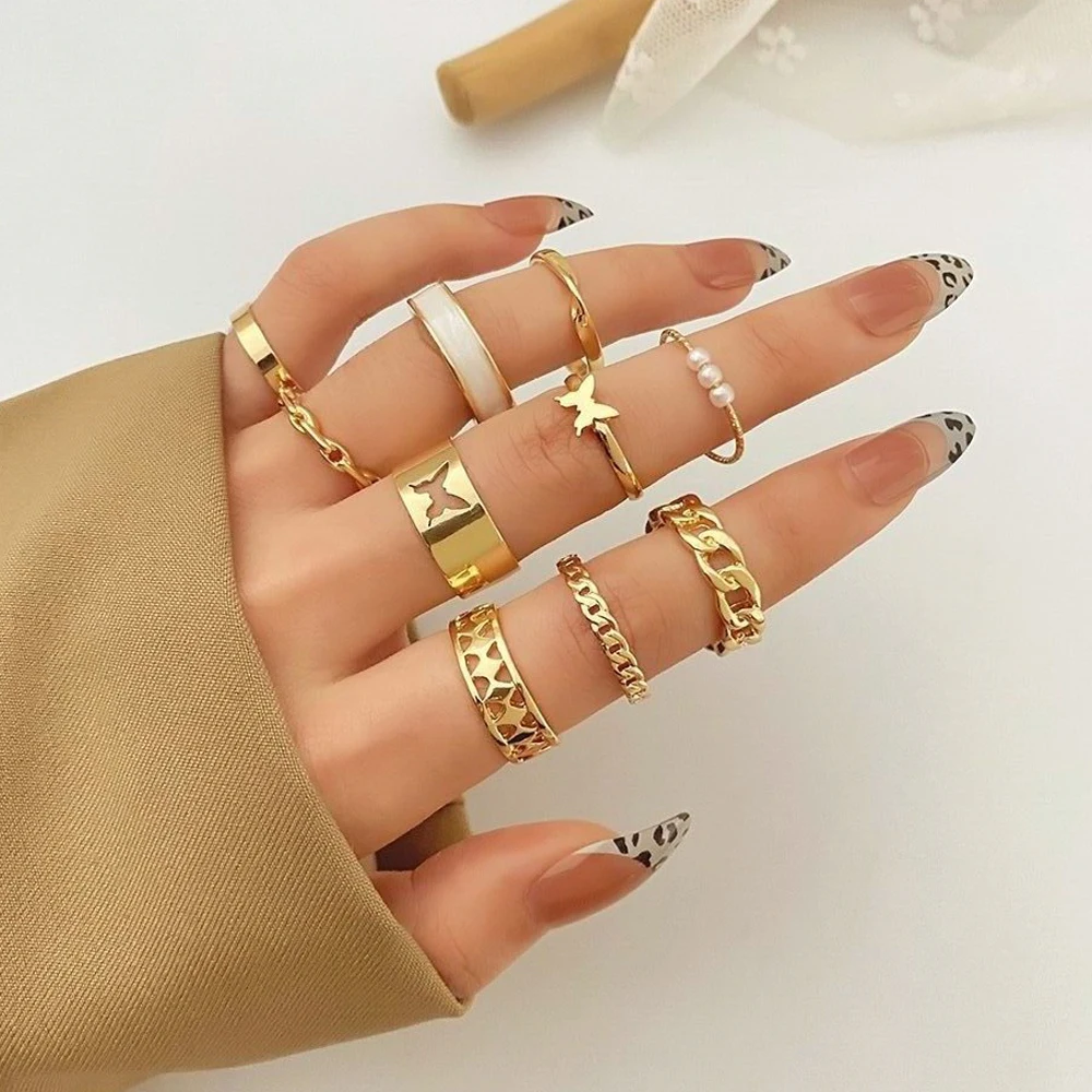 Набор Колец IFMIA золотистого цвета в богемном стиле с бабочкой для...