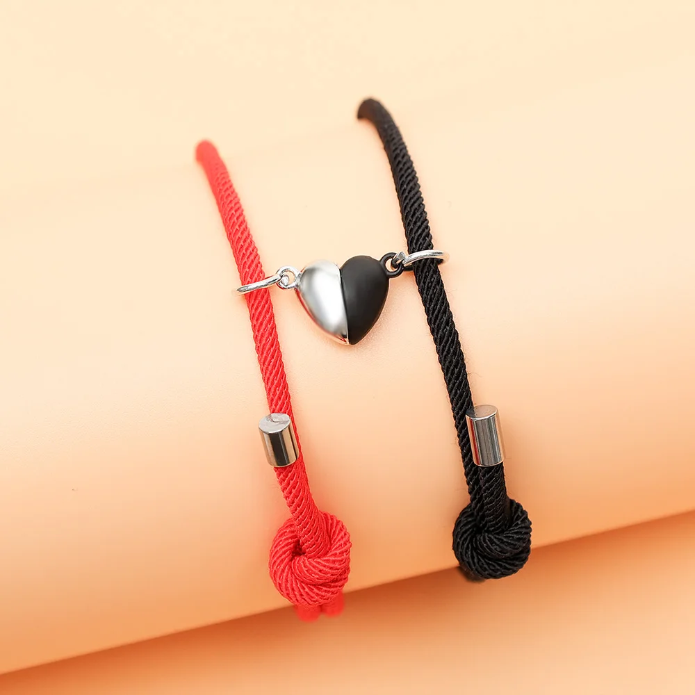 Магнитный браслет с двумя половинами сердца, браслеты для пар, мужские браслеты дружбы, плетеные браслеты на шнурке, магнитные ювелирные изделия, День святого Валентина