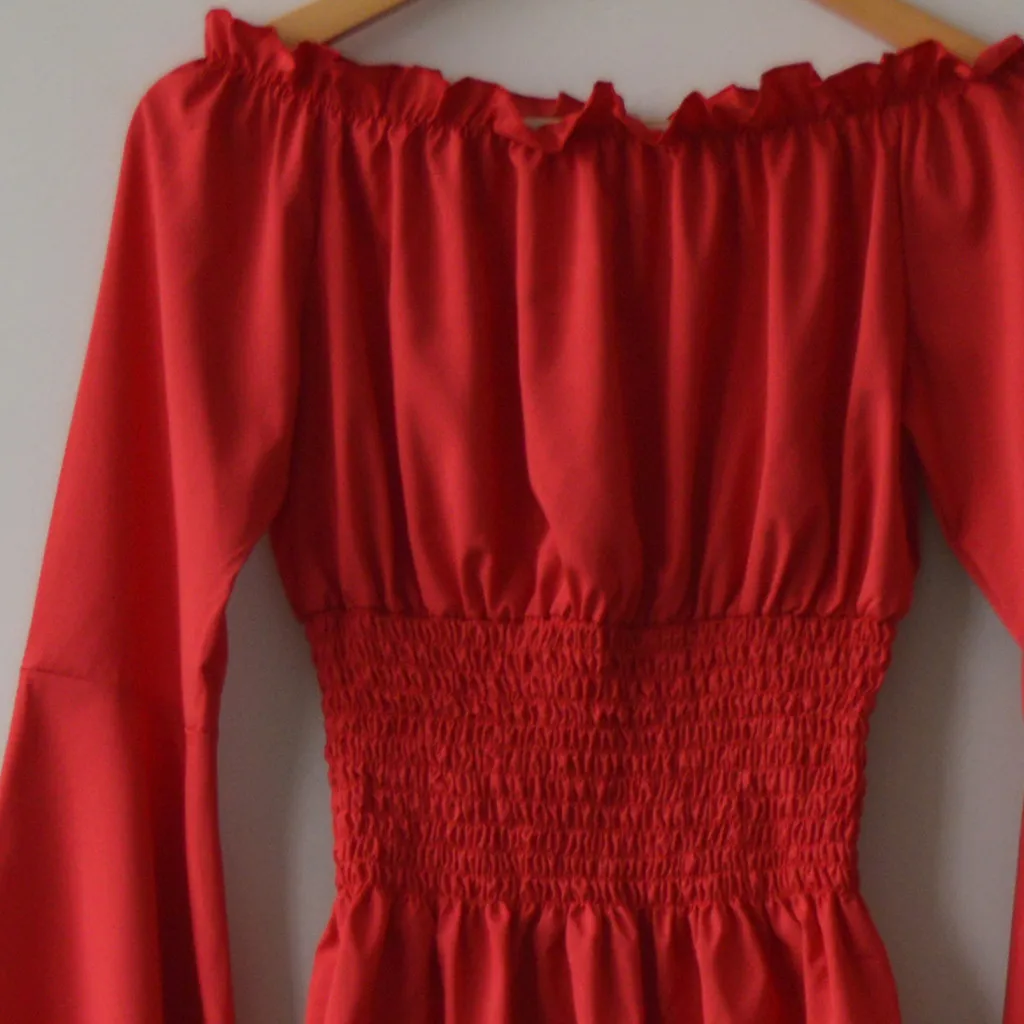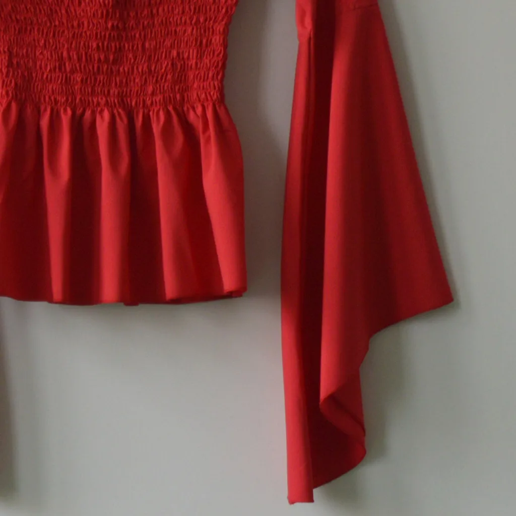 Женская блузка с длинным рукавом, рубашка с открытыми плечами в стиле ретро