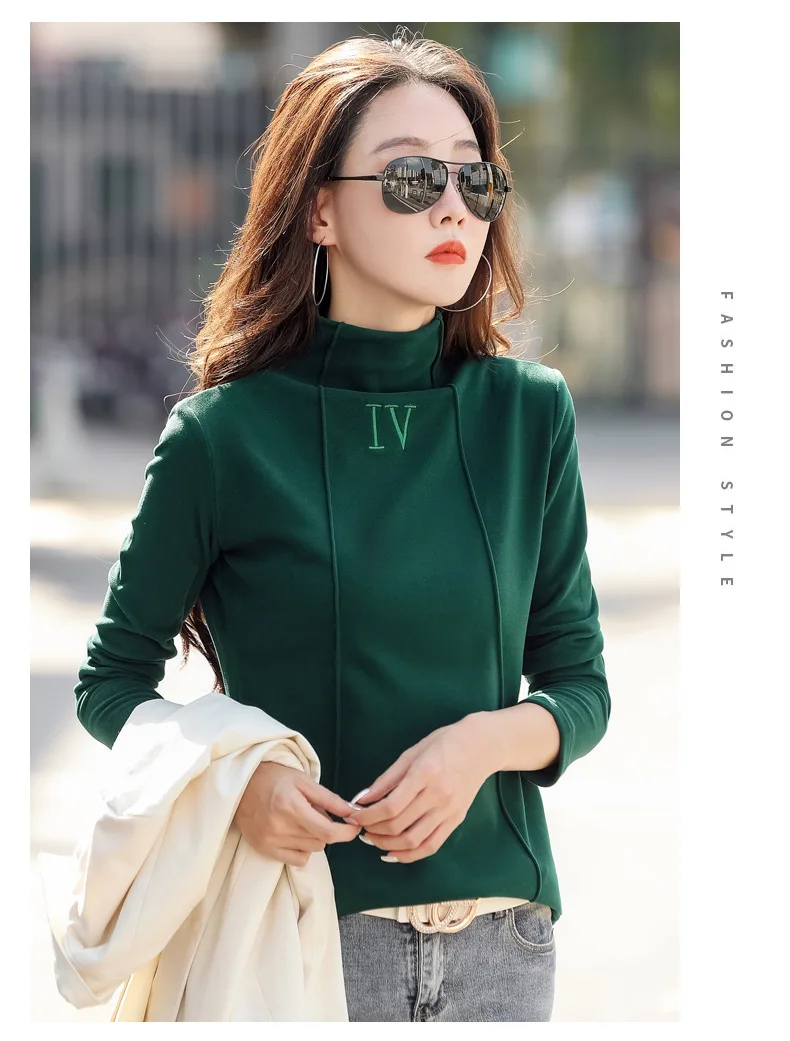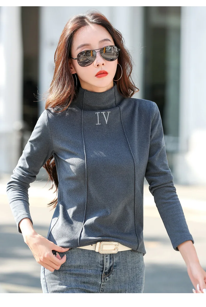 Новые женские футболки, хлопковая футболка с длинным рукавом, женские зимние топы, футболки, однотонная Женская водолазка, женская футболка, рубашки