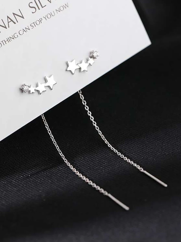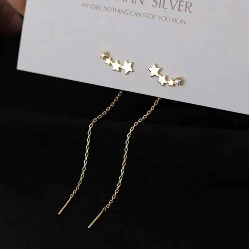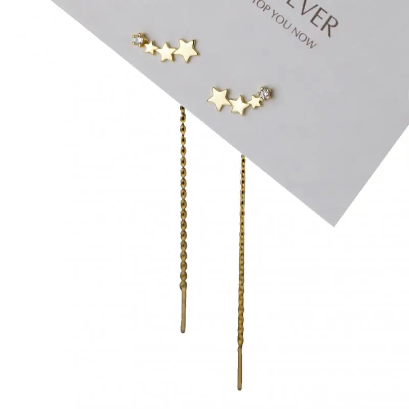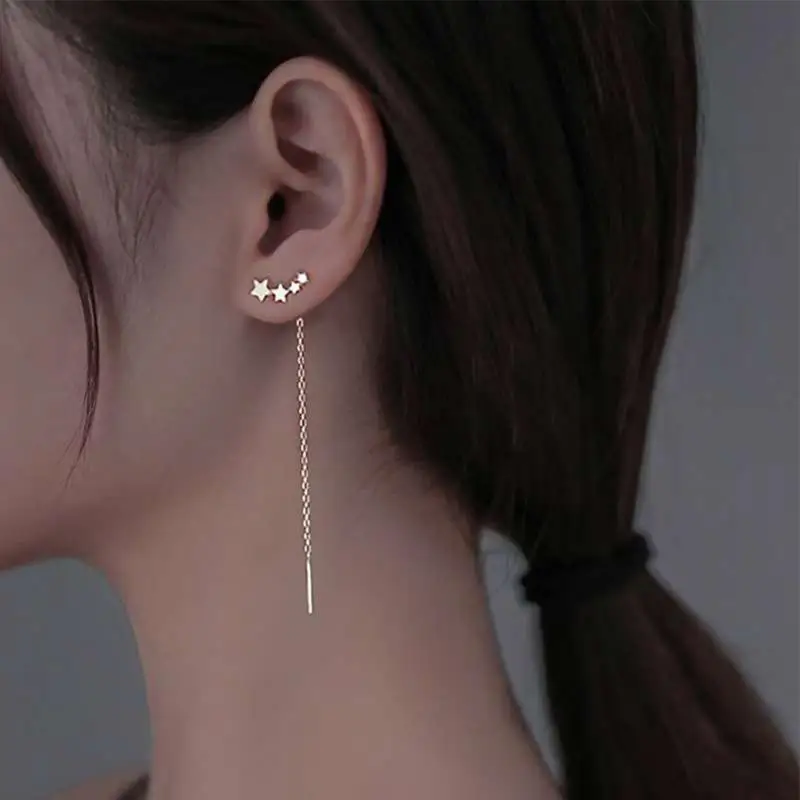 Женские серьги в виде звезд, характерные длинные маленькие серьги и...
