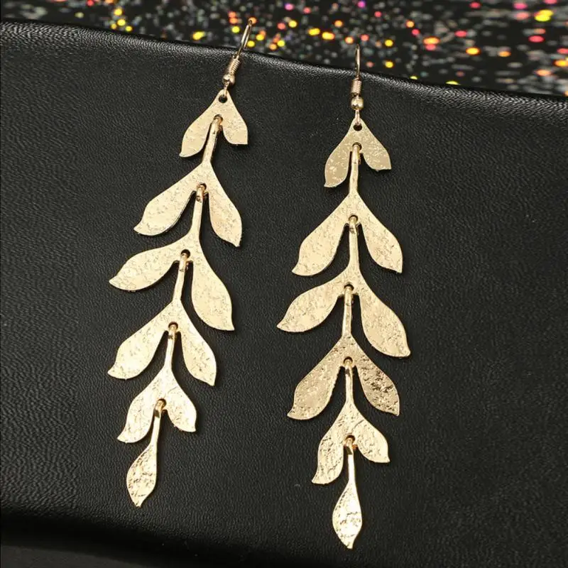 Новые стильные модные золотые серьги в виде листьев, длинные женски...