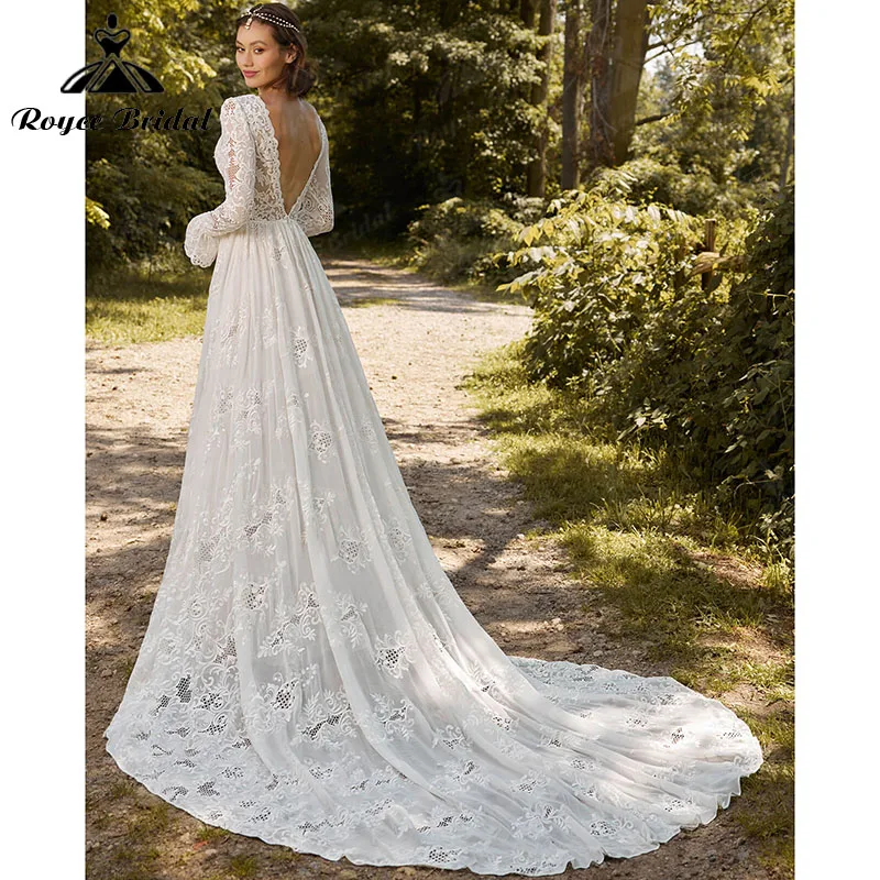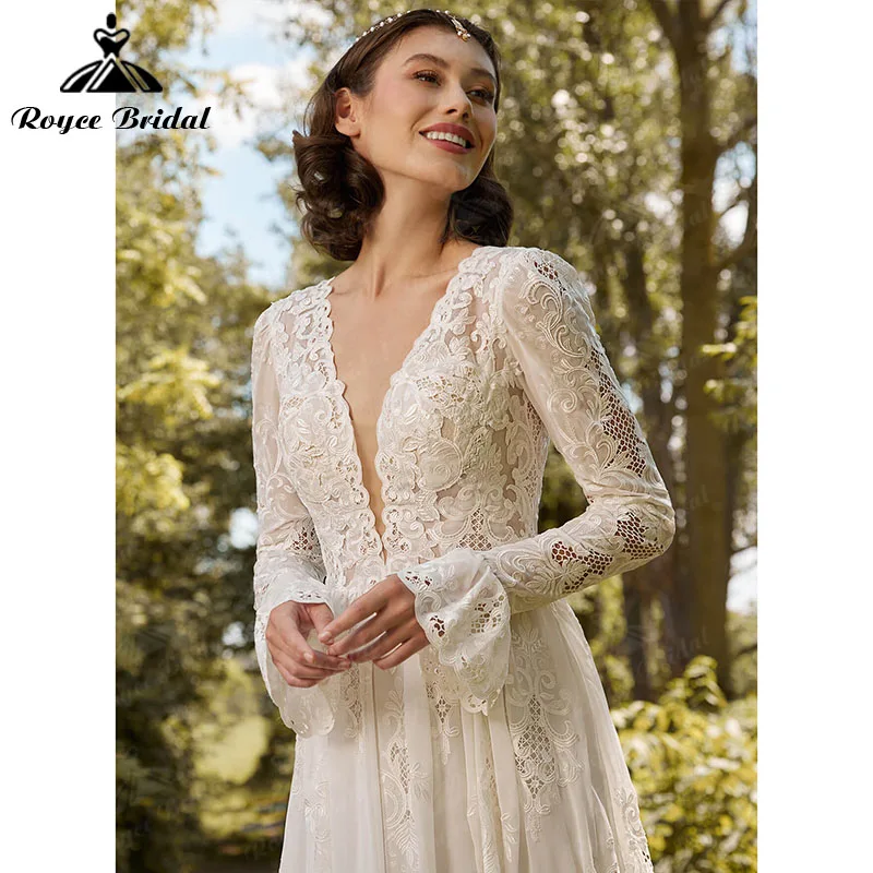 Богемное свадебное платье А-силуэта в богемном стиле с длинными рук...