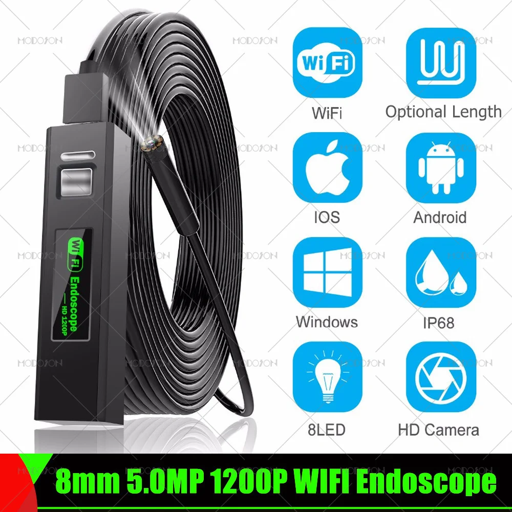 8 мм 5.0MP 1200P WIFI HD эндоскоп камера Змеиный кабель эндоскопия промышленный осмотр видеоскоп бороскоп для iOS iphone Android