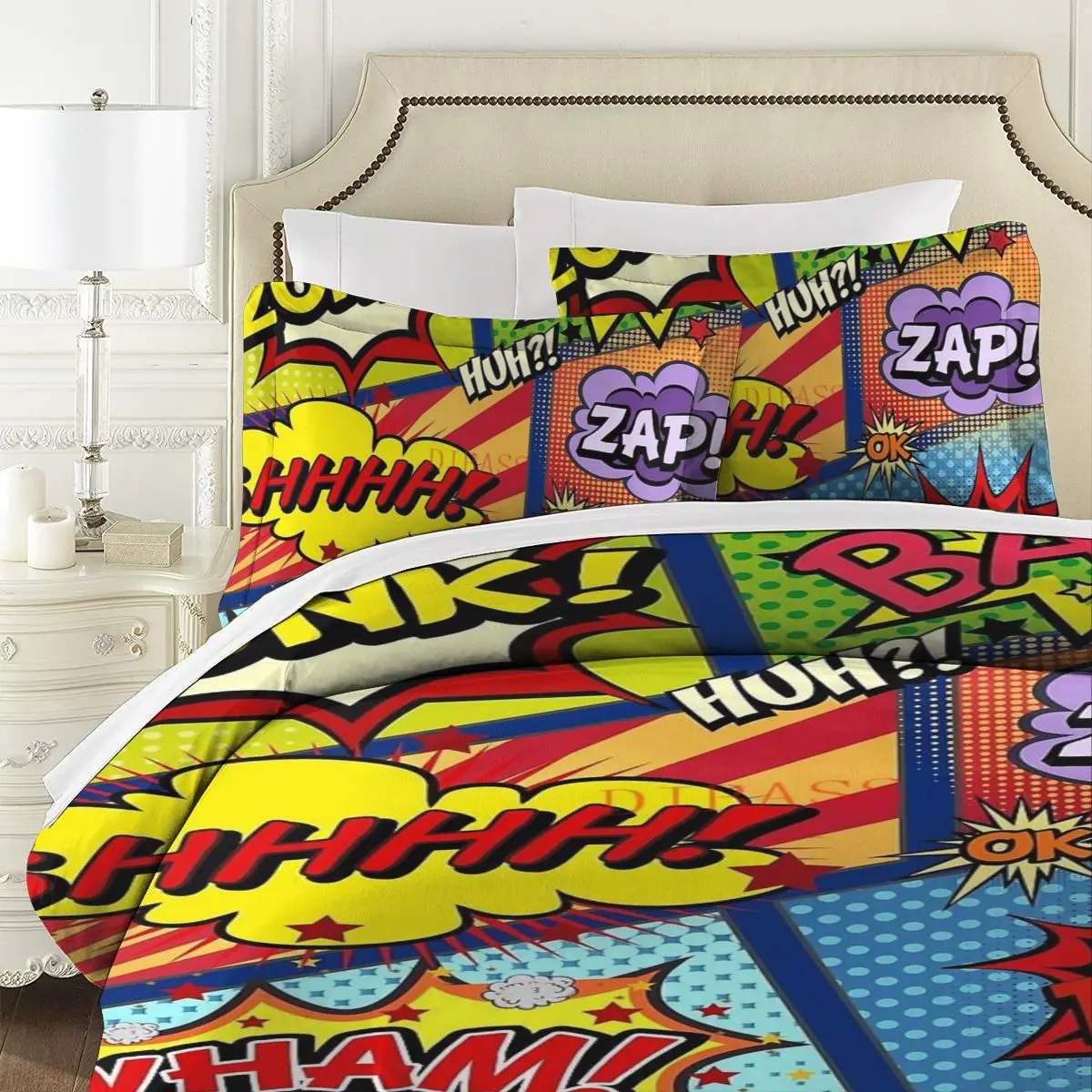 Комплект постельного белья из 3 предметов с мультяшным коллажем