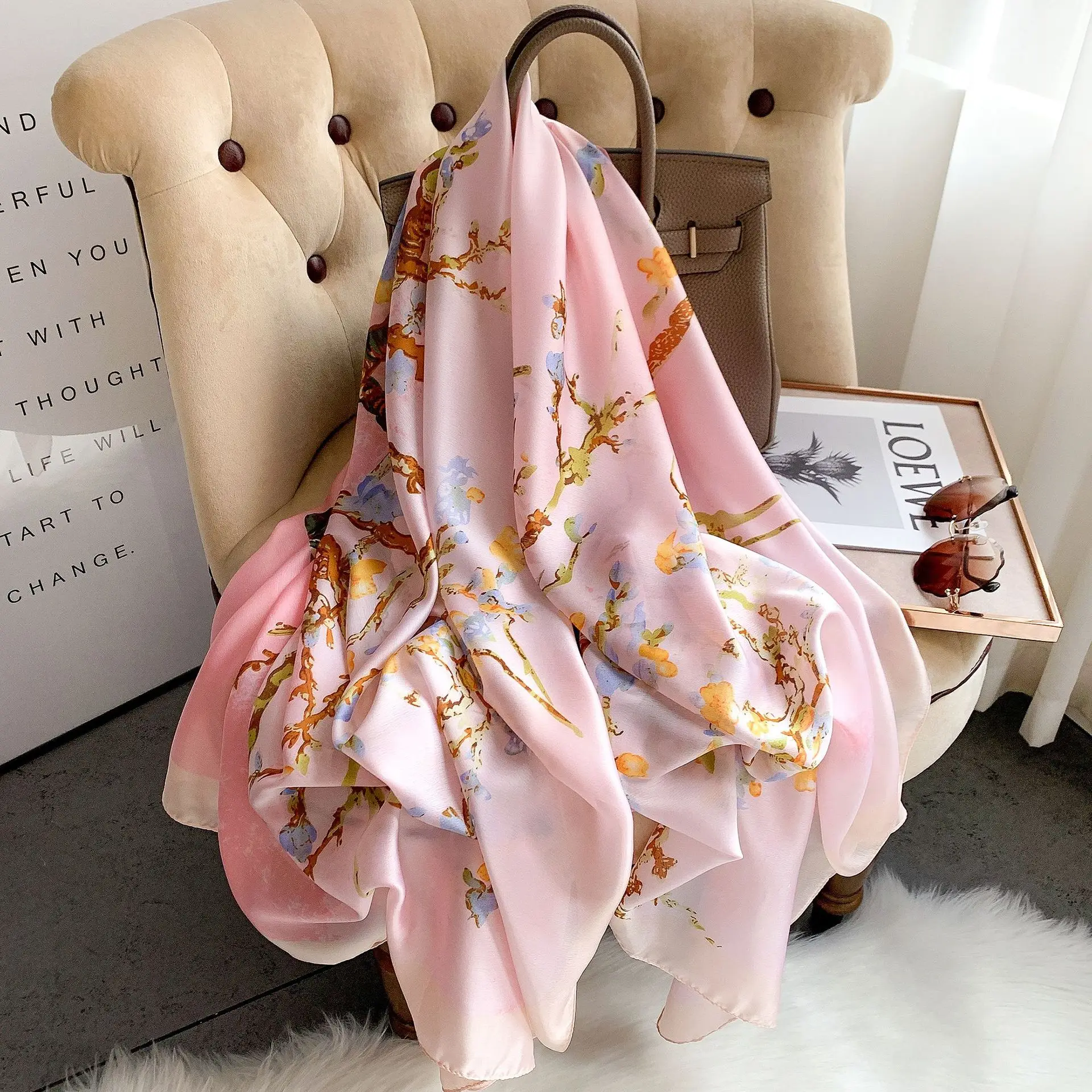 2022 женский шелковый шарф, роскошный дизайн, Женская пляжная шаль ...