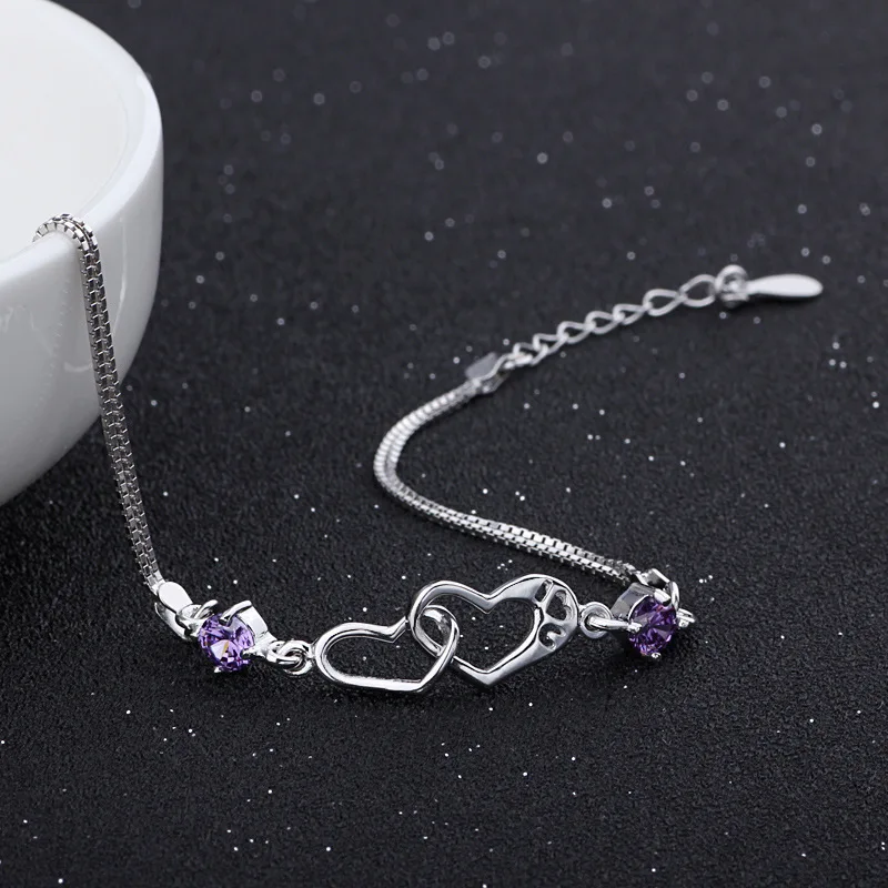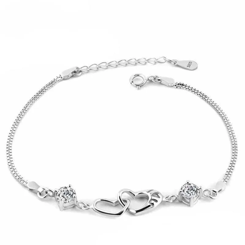 Женский браслет с двойным сердцем, элегантный браслет из серебра 92...