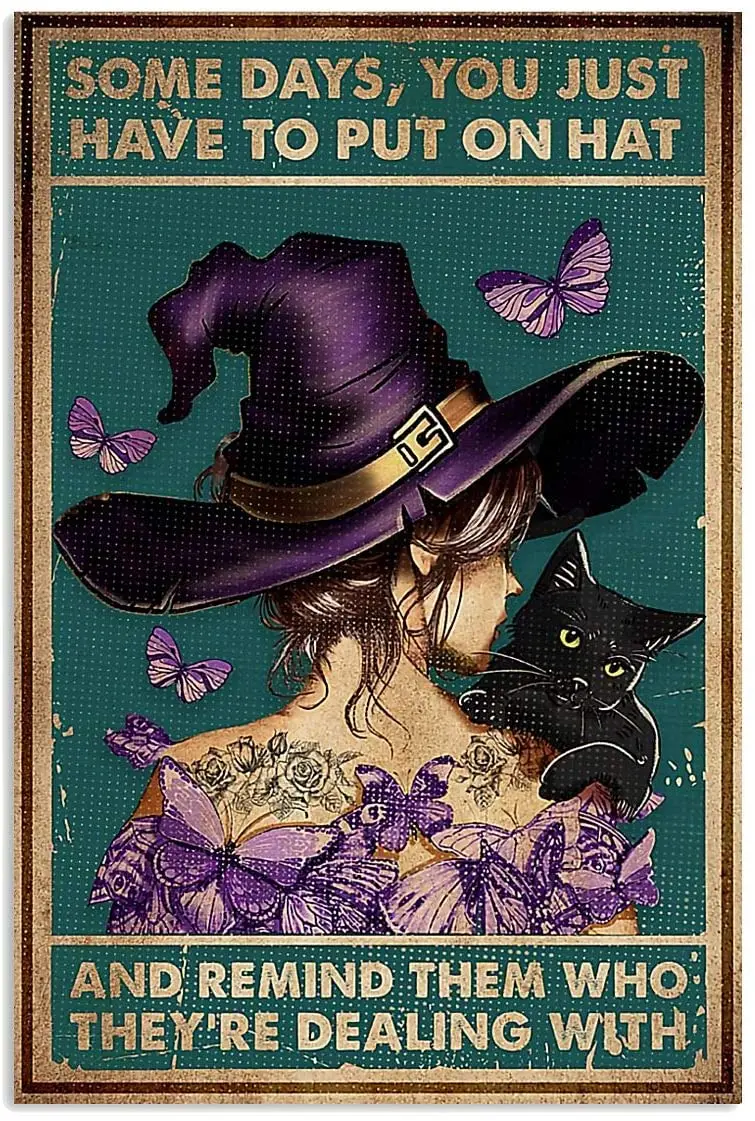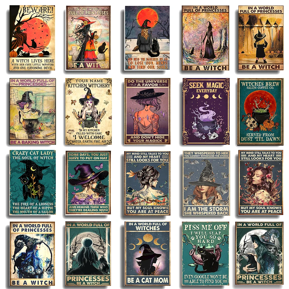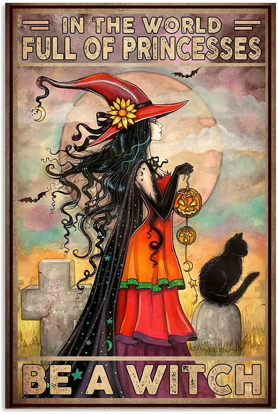 Постеры на холсте с изображением черной кошки в стиле ретро, постеры на Хэллоуин в мире, полная принцессы, будьте ведьмой, винтажная картина на стену, декор для комнаты и дома, 80 секунд