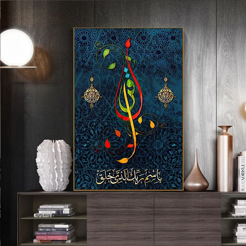 Мусульманское исламское искусство арабская каллиграфия окрашенная Картина на холсте исламский плакат и принты настенное Искусство гостиная украшение для дома