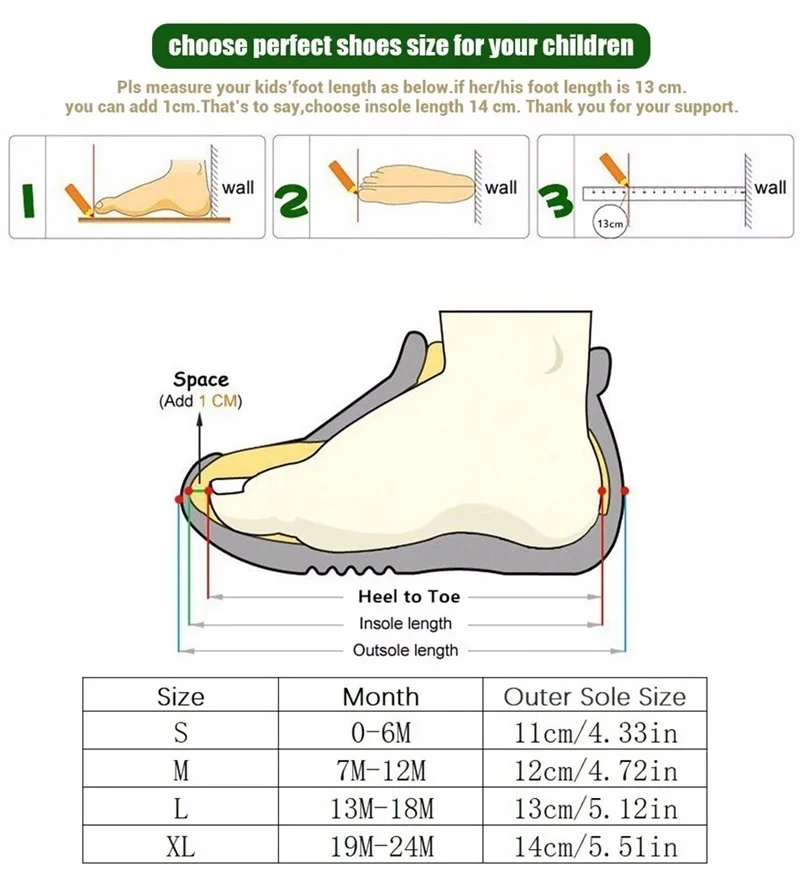 11 (0-6 м) 0-6 месяцев 11,2 см/4,41 "5,5 см/2,16" 7,5 см/2,95''12 (7-12 месяцев) 6-12 месяцев 12,5 см/4,92 "6,0 см/2,36" 8,0 см/3,15''13 (13-18 м) 12-18Months 13,3 см/5,23 "6,5 см/2,56" 9,0 см/3,54''
