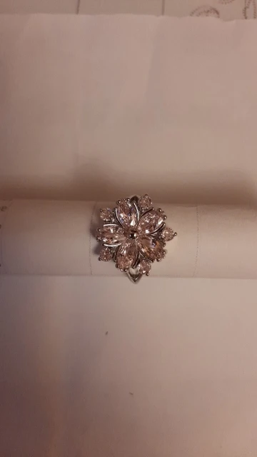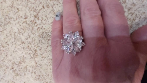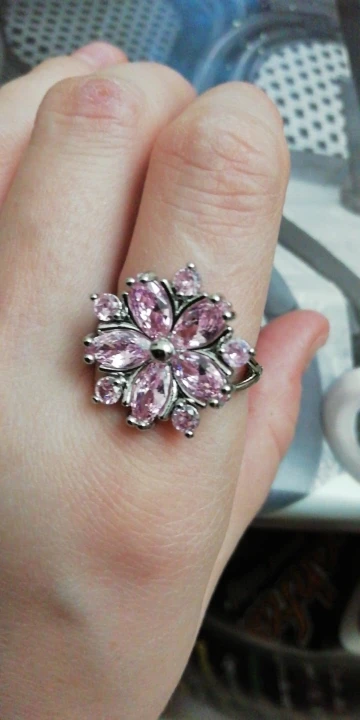 заказывала под серьги с белым и розовым цветами камней, изначально на картинке продавца было другое, идеально подходящее кольцо, а потом описание сменили и кольцо прислали просто розовое, ну ладно, продавцу всё равно 5, уже делала у него покупки, но товару 4, размер 5 примерно 15.7 российский