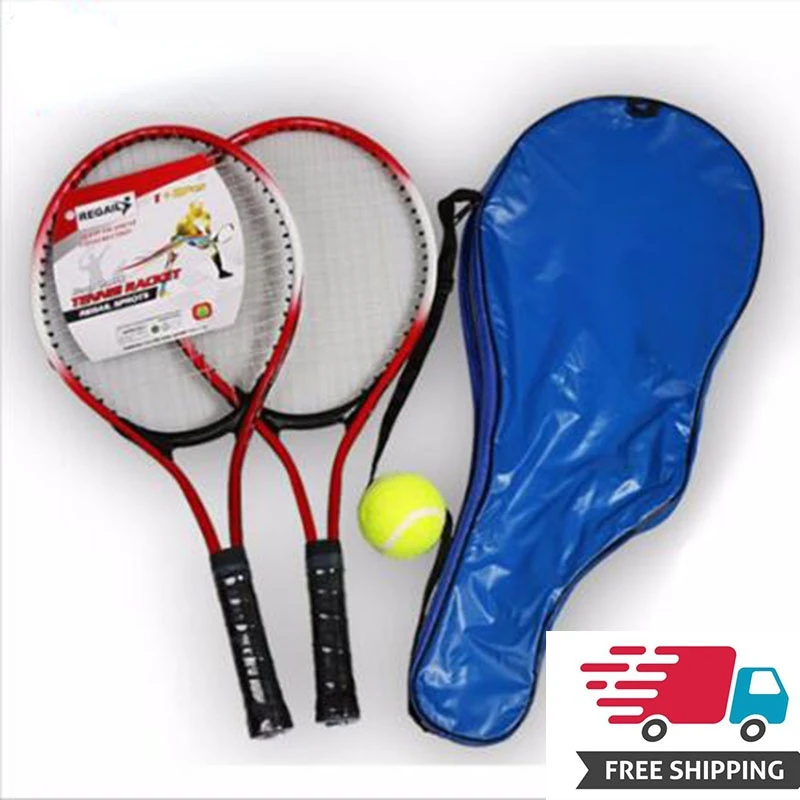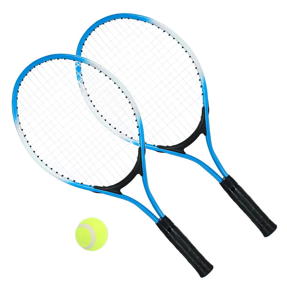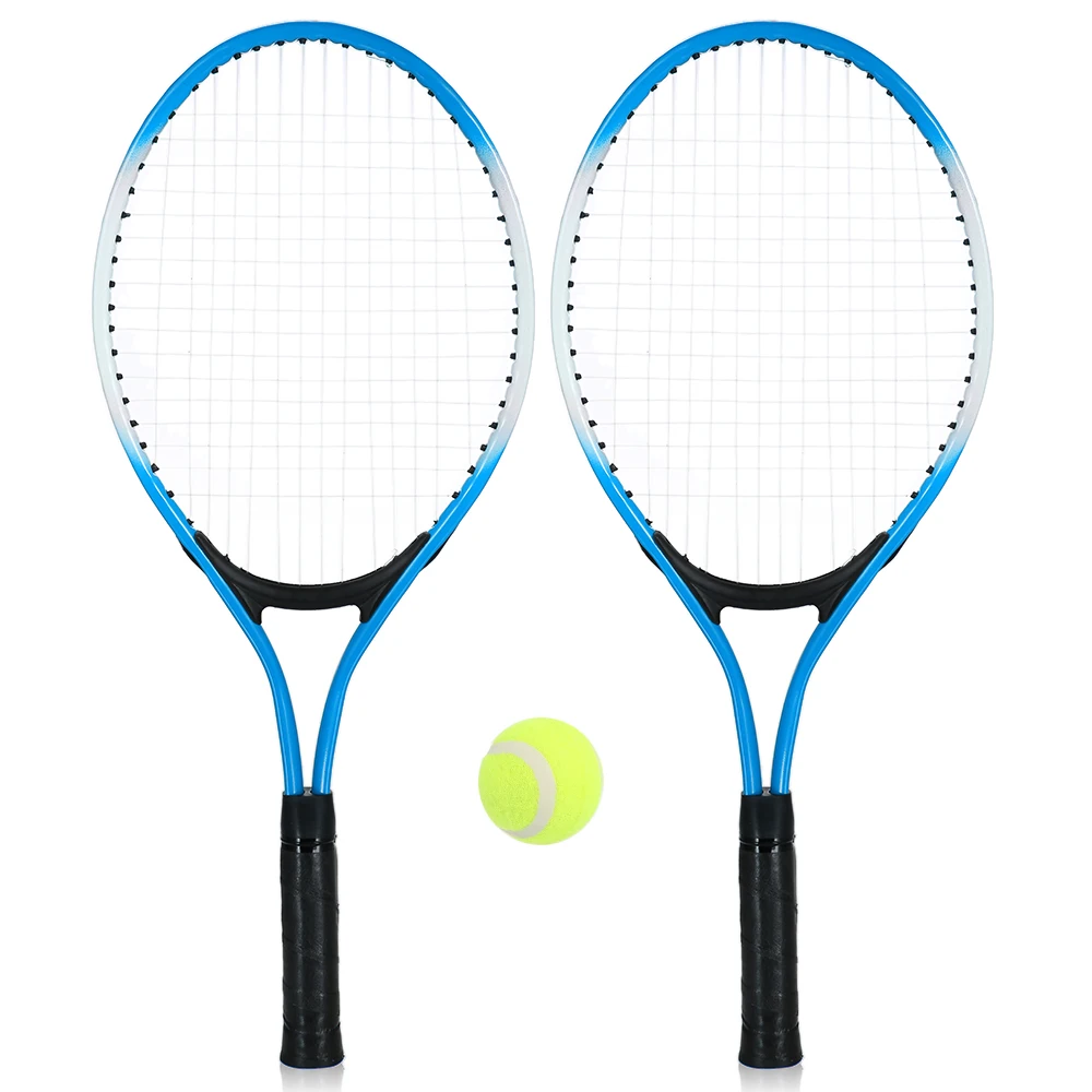 Набор из 2 ракеток для тенниса для подростков, тренировочная ракетка из углеродного волокна, теннисная нить из стального материала с бесплатным теннисным мячом