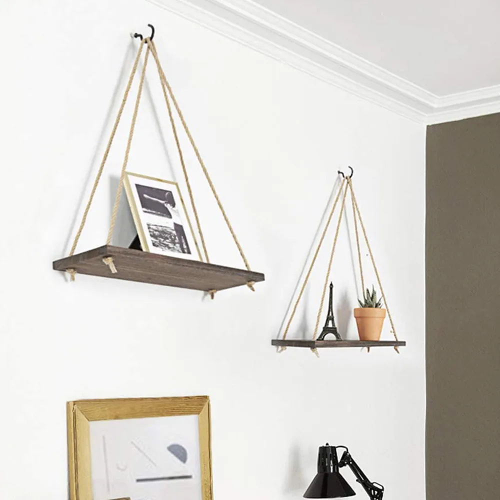 Готов и легко крепится на стену или устанавливается сверху от потолка. Из-за природы деревянного материала конструкция каждой полки будет иметь свои уникальные характеристики и отметку. Эти простые деревянные полки являются многофункциональным хранилищем и добавят минимализм, декоративность в любую комнату вашего дома.