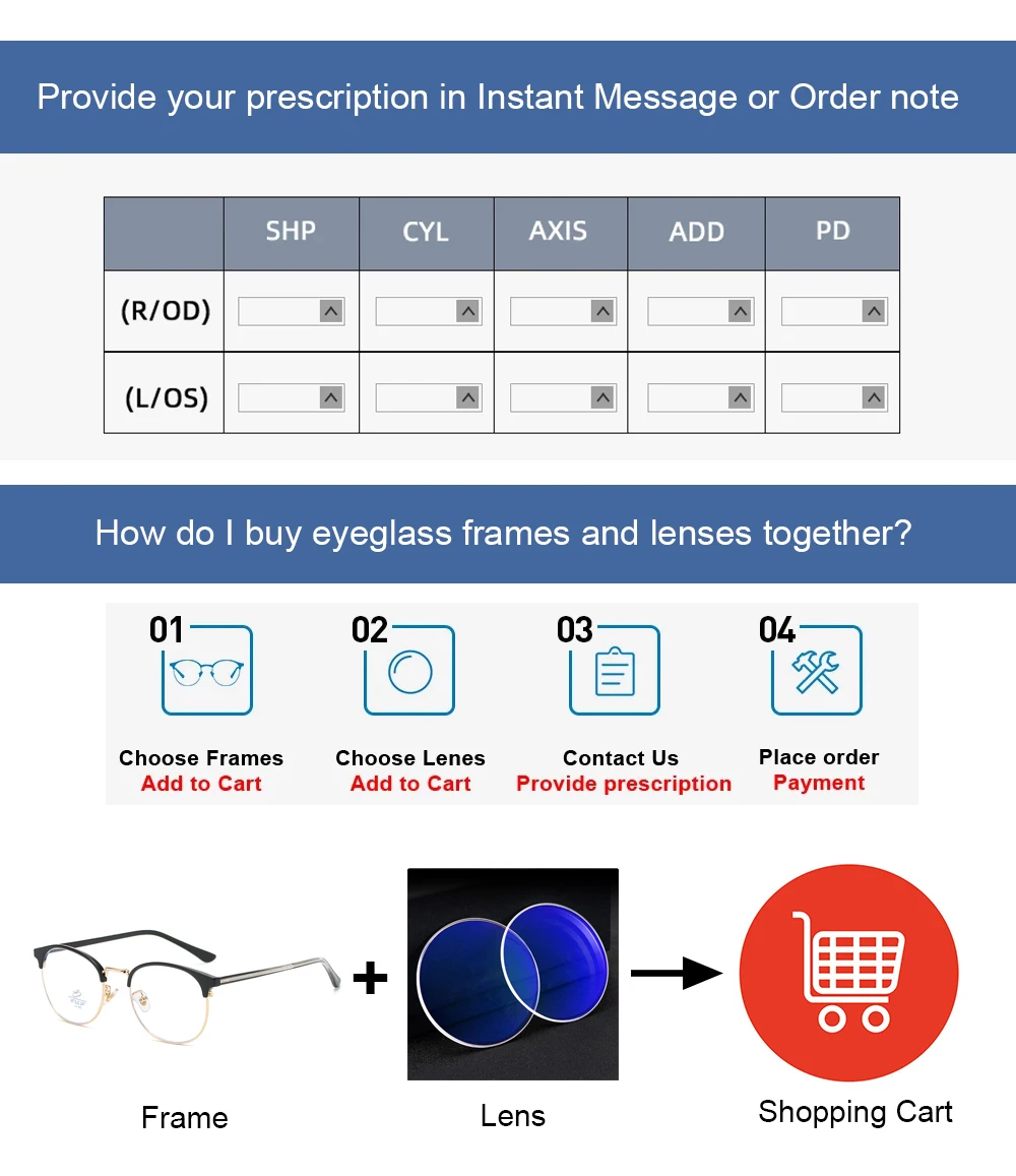 Уважаемый клиентВы можете заказать только оправу для очков или заказать как оправу, так и линзы.Мы отрежем и закрепим объектив на оправе, если вы закажете как оправа, так и линзы.Как заказать очки по рецепту?Просто добавьте оправа и линзы в корзину и перейдите на проверку.
