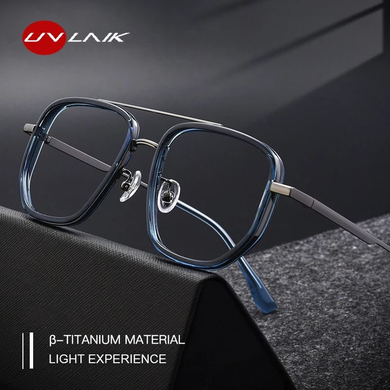 Оправа для очков UVLAIK TR90 из чистого титана для мужчин и женщин, Ультралегкая оправа для рецептурных очков с двойным лучом в стиле ретро