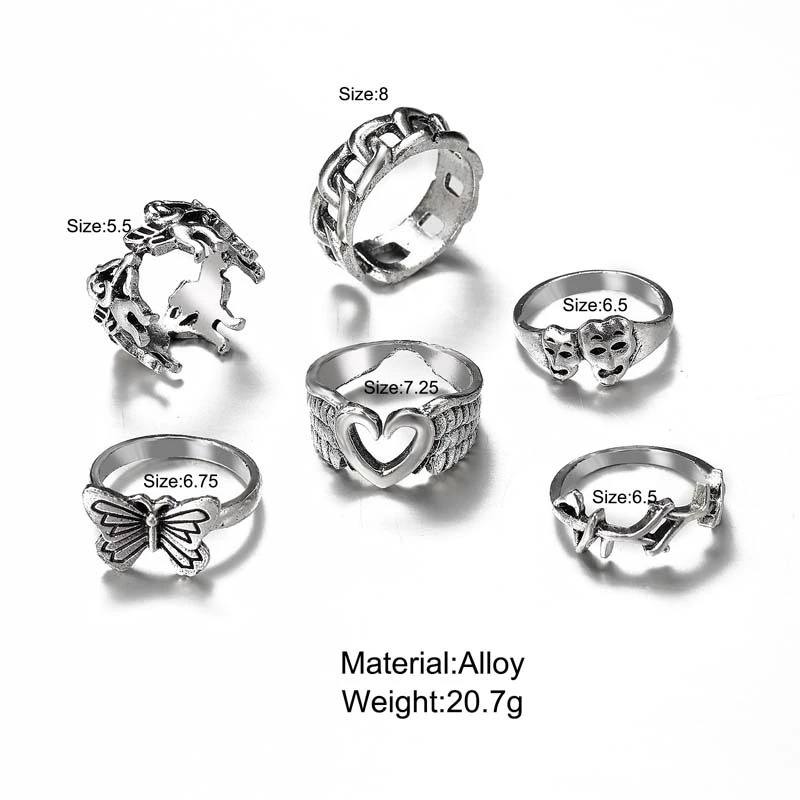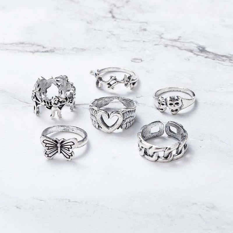 Набор женских винтажных колец в богемном стиле с геометрическим узором и вырезами