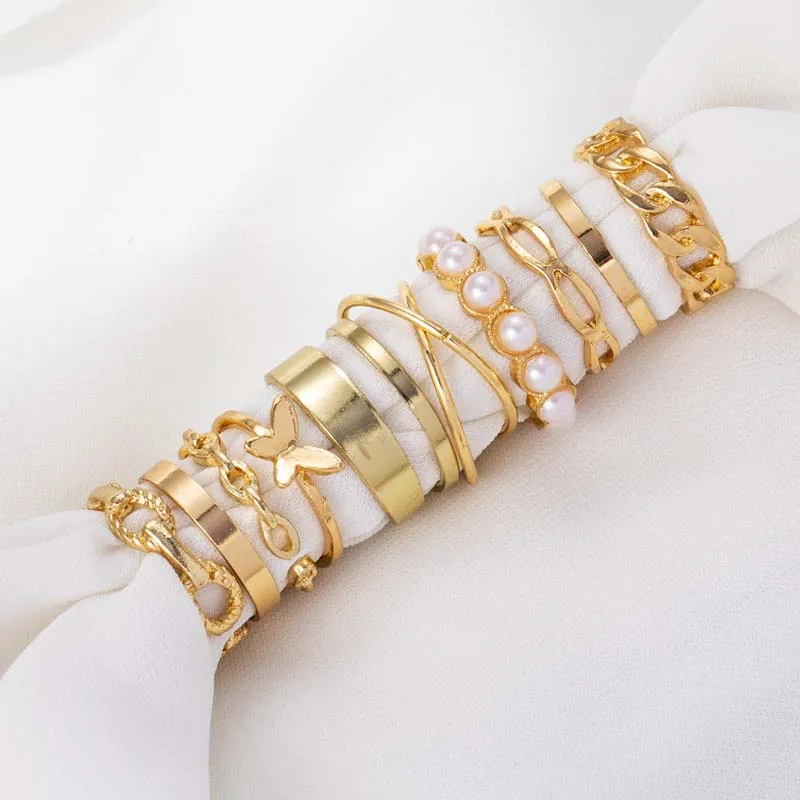 Набор Колец FNIO в стиле хип-хоп, панк, Золотая цепочка, для женщин...