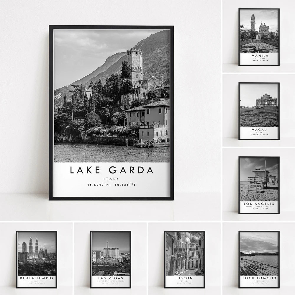 Постер с Италией с принтом озер Гарда для путешествий постер с Италией черно-белый для спальни домашний декор