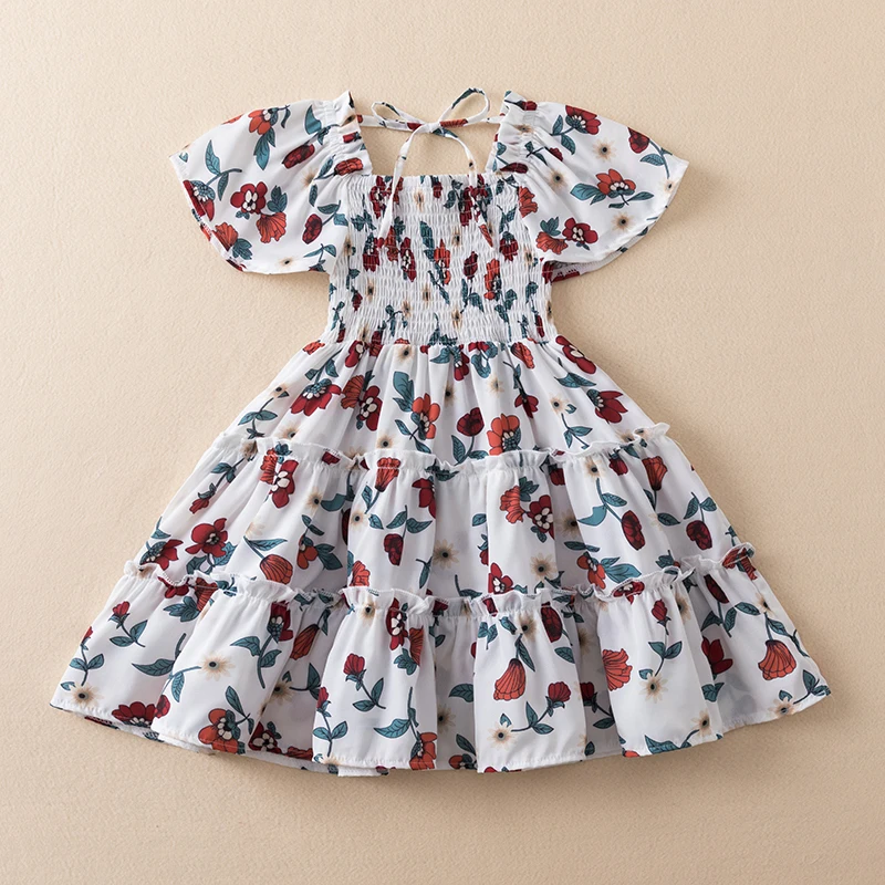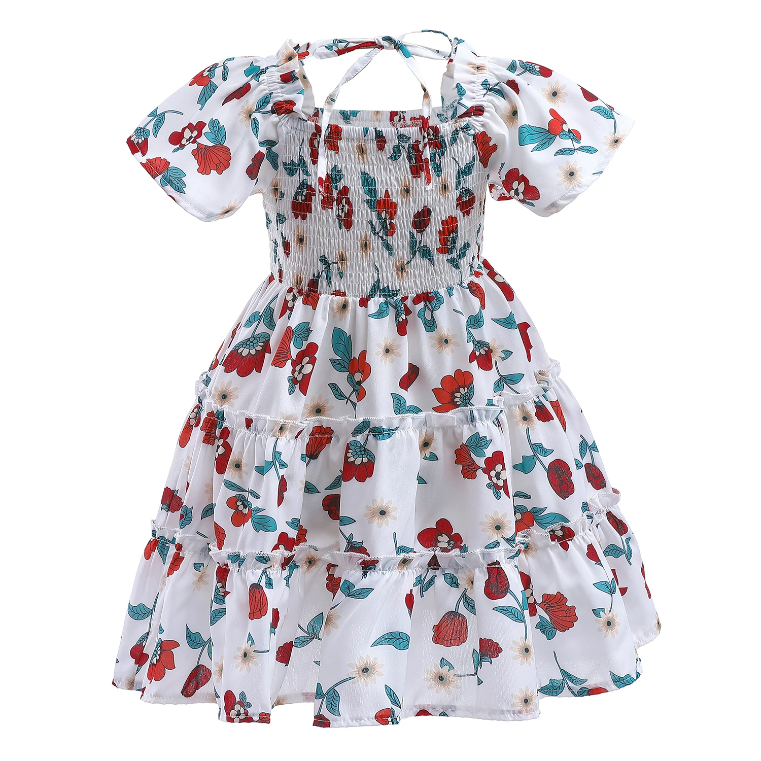 Новинка 2022, Модные Платья с цветочным рисунком для девочек, летня...