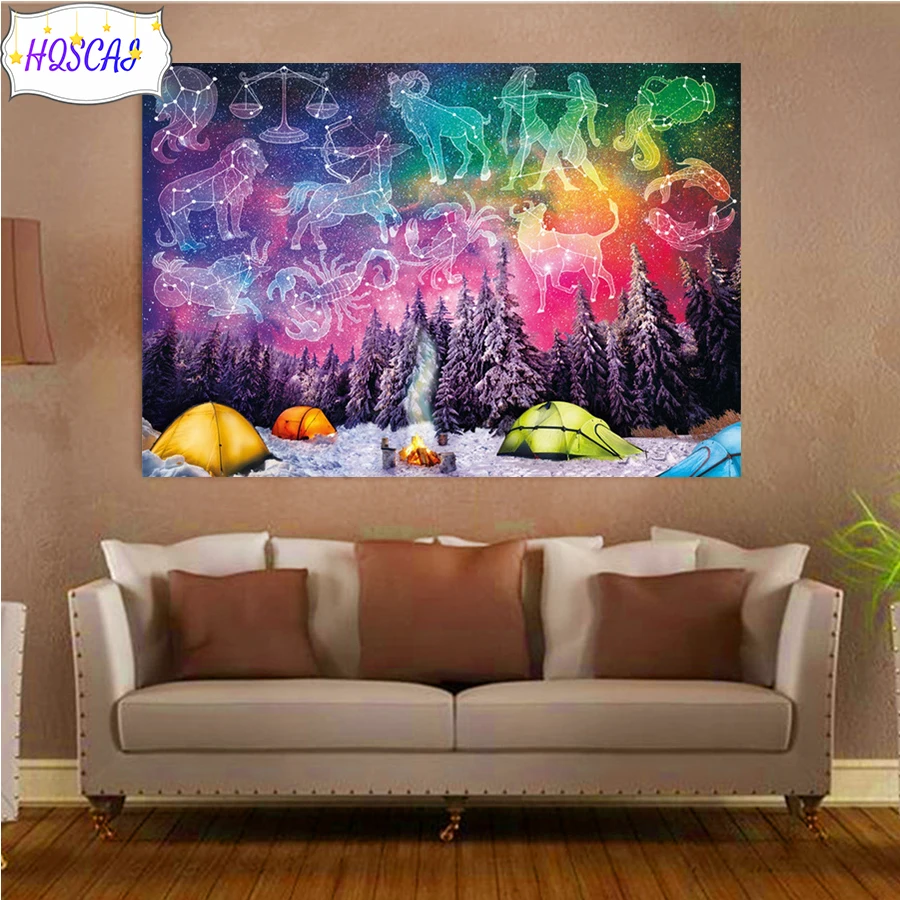 Алмазная 5D картина сделай сам, рисунок со снежными деревьями, звездным небом, Круглая Мозаика с квадратными бурями стразы, настенное искусство, картина для украшения дома