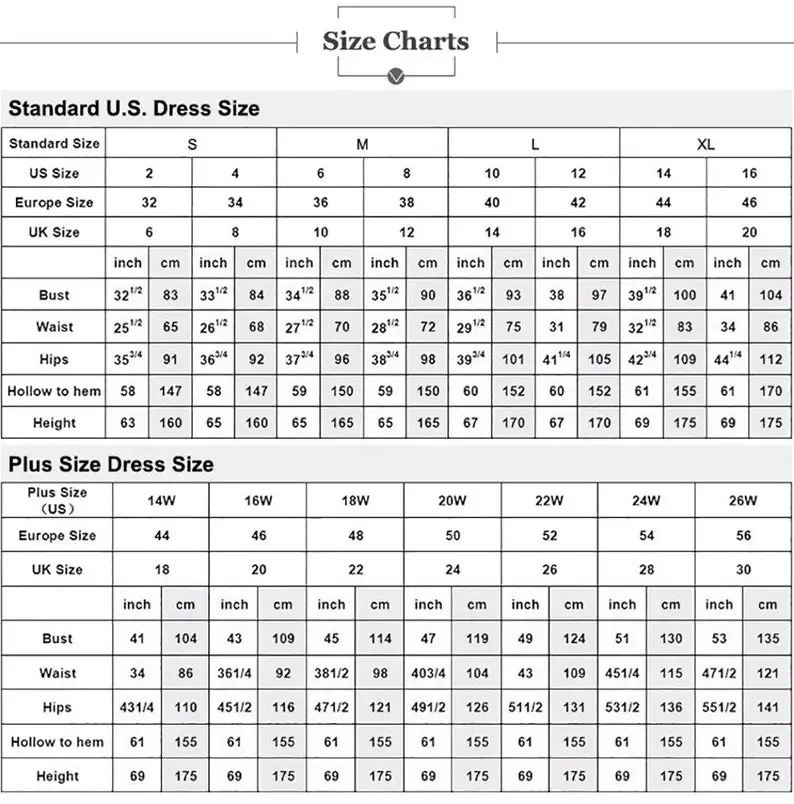 Если вы хорошо знаете размер своего тела и не можете повторно измерить его, вы можете заказать свадебное платье в соответствии со стандартным размером. Пожалуйста, проверьте детальные данные и отправьте заказ в ближайший к вашему телу размер данных. Если вы выбираете какие-либо параметры размера, которые значительно отличаются от вашей фигуры, пожалуйста, свяжитесь с нами вовремя.