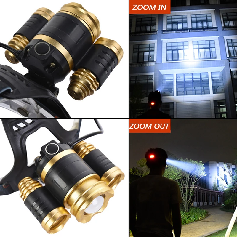Налобный фонарь с регулируемым фокусом, 18650 лм, 1 * T6 и 2 * Q5