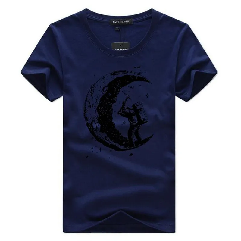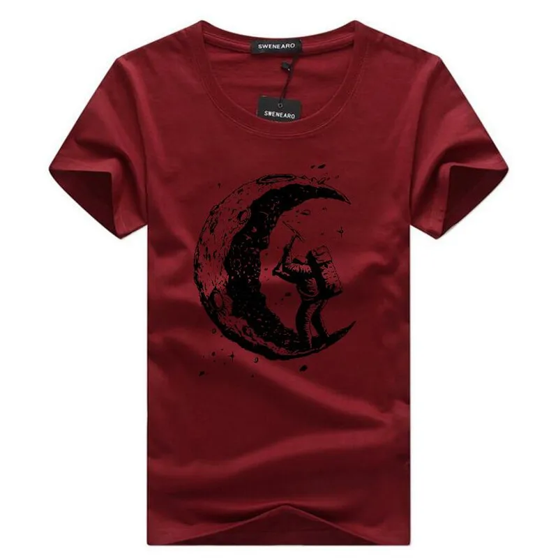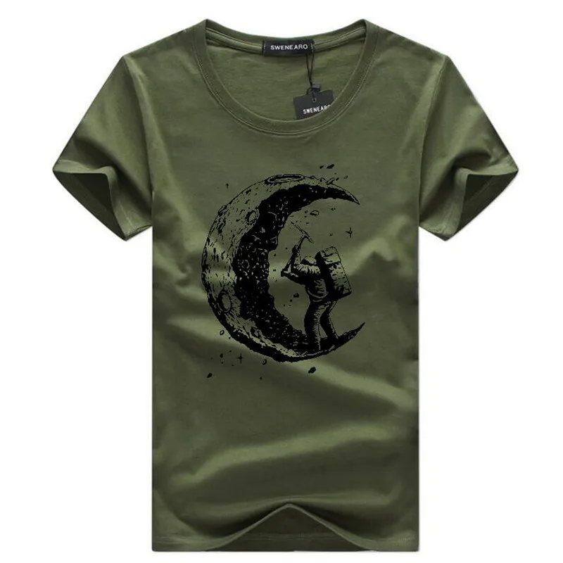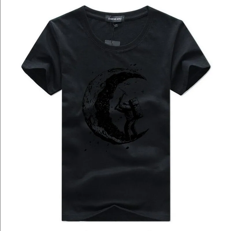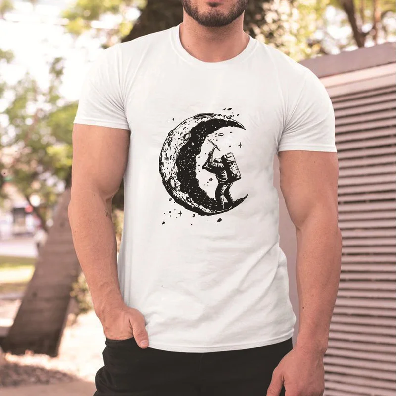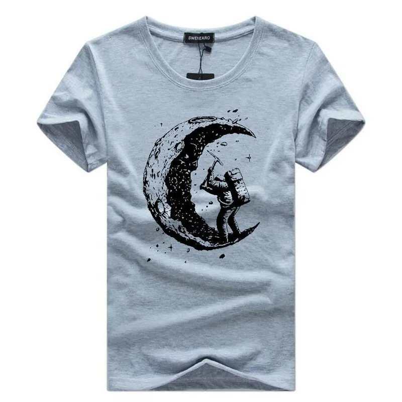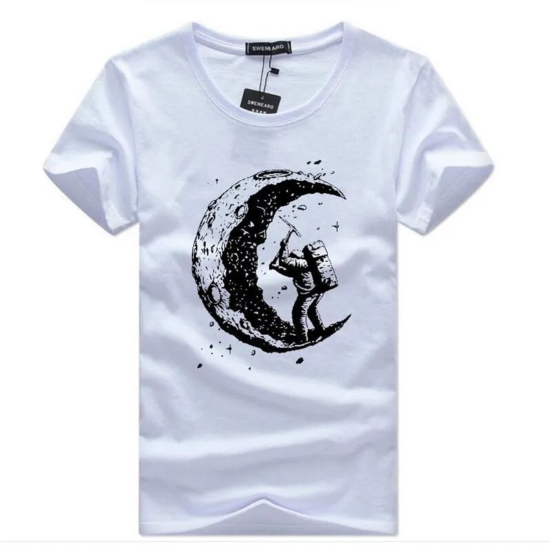 Футболка мужская стрейчевая с круглым вырезом, повседневная тенниска из хлопка, майка с мультяшным принтом лунного майнера, лето 2022