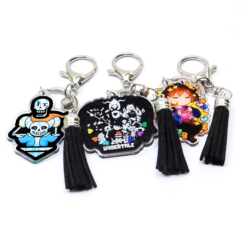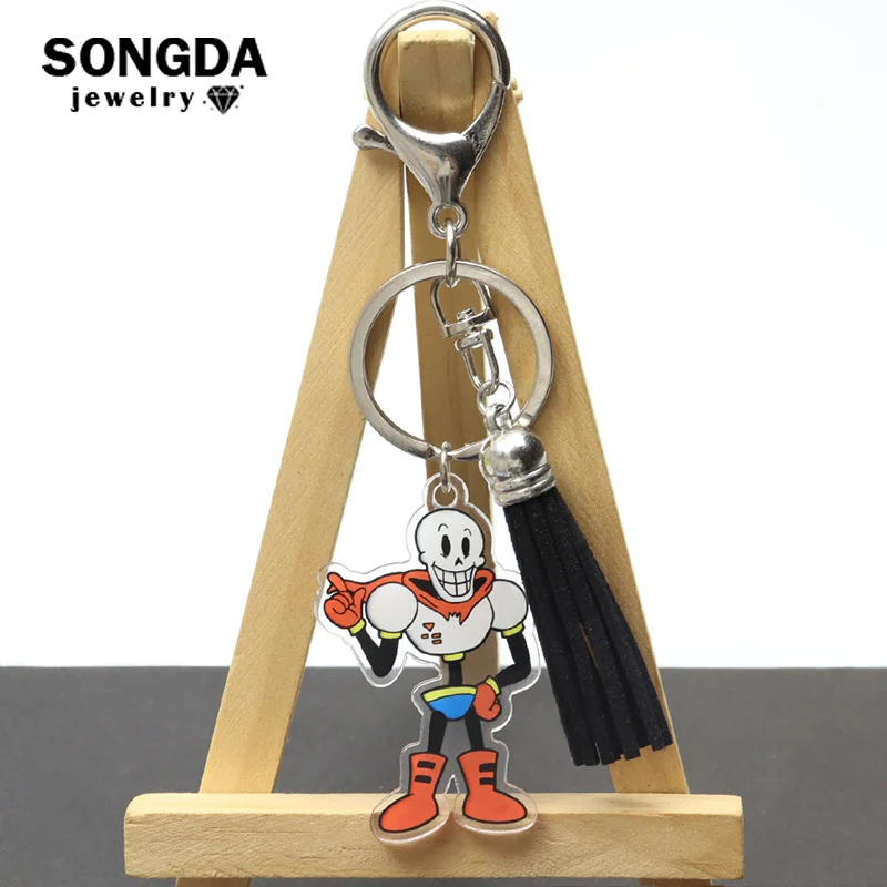 Новинка, брелок для ключей с аниме Undertale Sans, Мультяшные фигурки, чашеобразный призрак, король, кости, брелок, акриловая подвеска с кисточкой, Детские безделушки