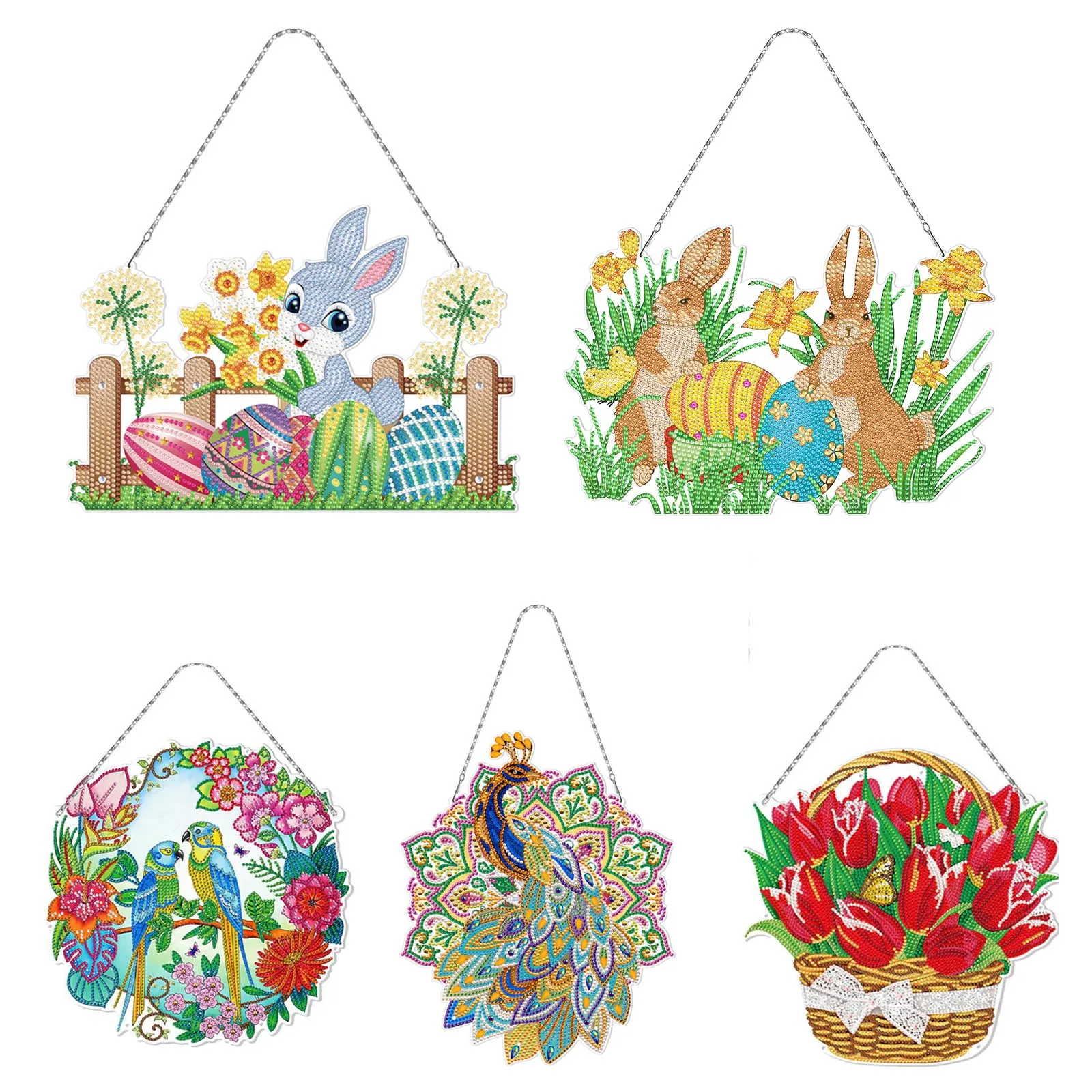 Алмазная картина сделай сам, украшение в виде пасхального кролика, венка с яйцами, мозаика из страз ручной работы, 5d украшение для дома, праздничный подарок