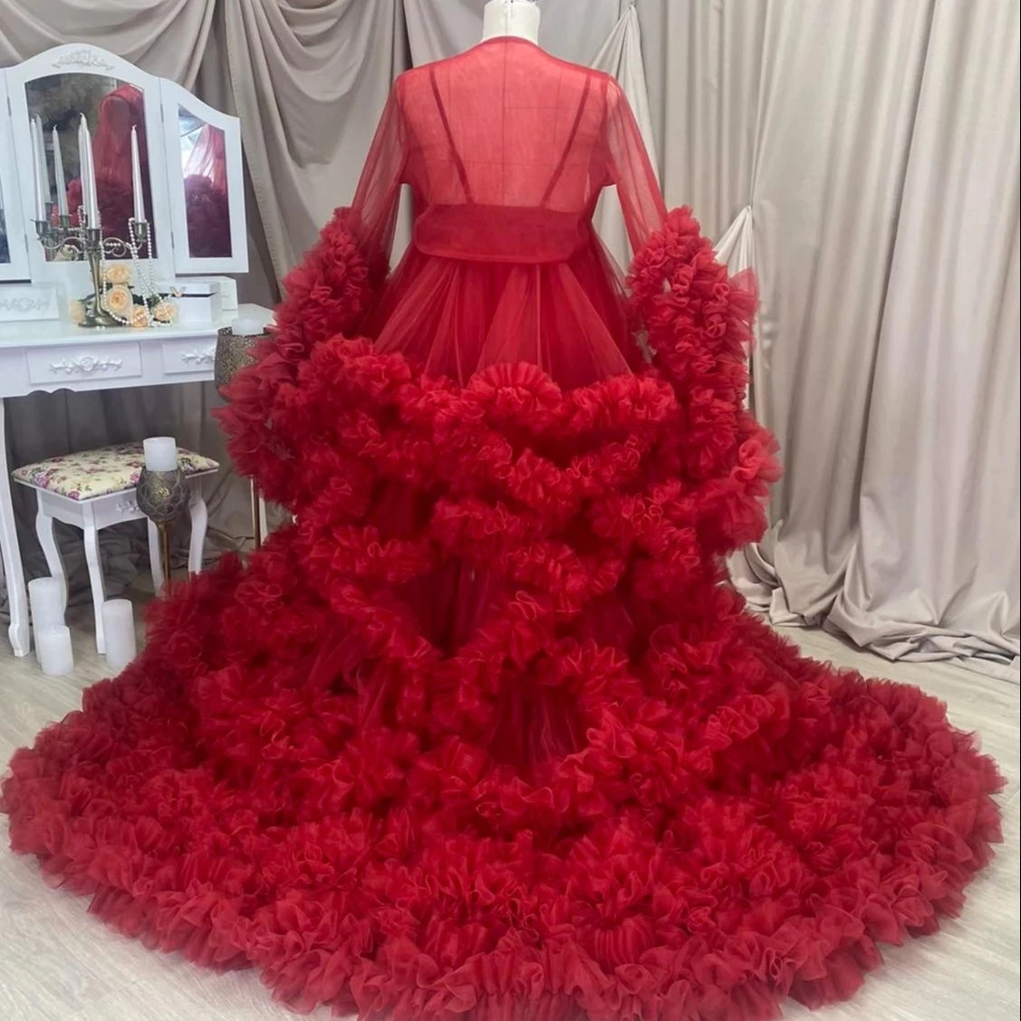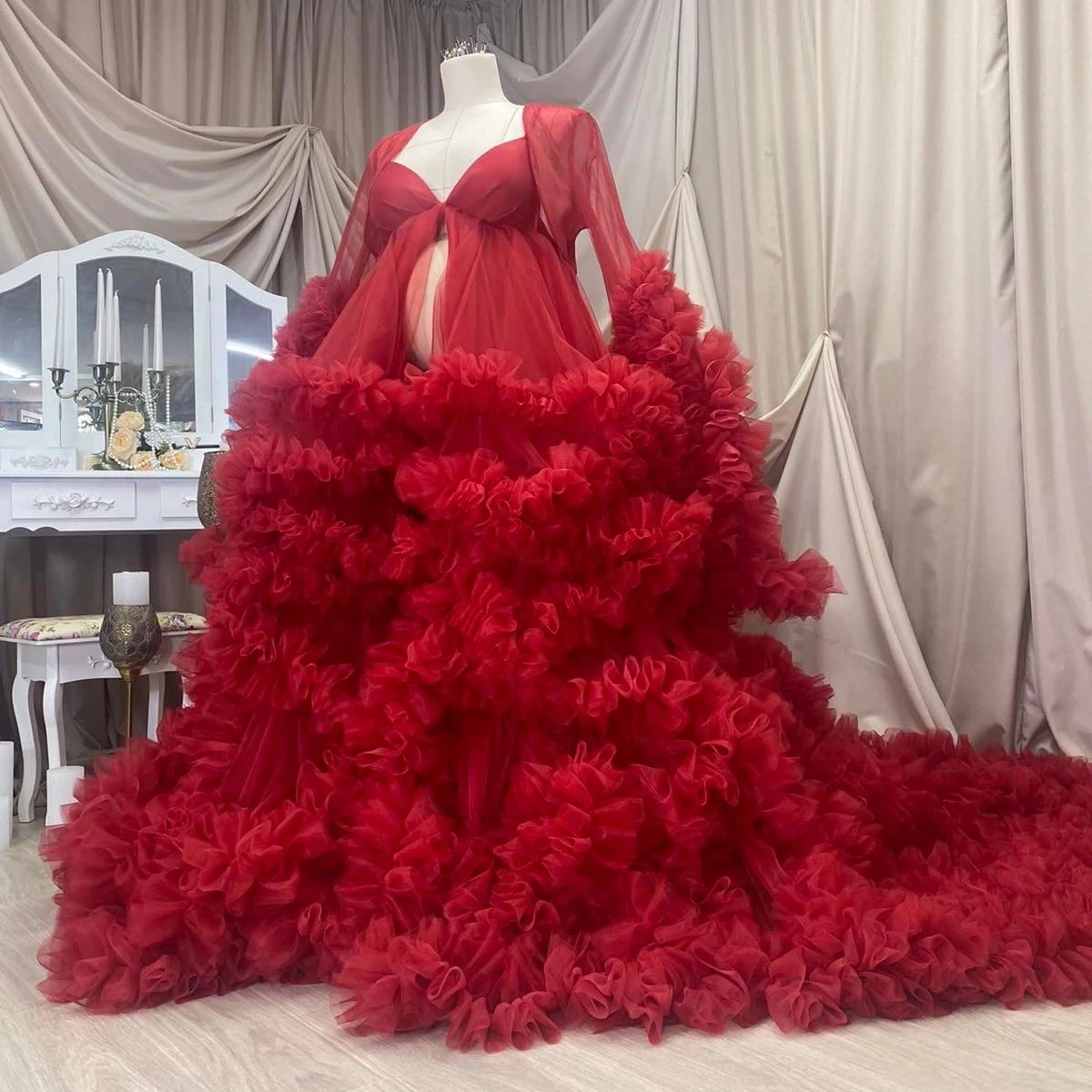 Экстра Пышная красная роба для беременных фотосессия женские платья с съёмная накидка куртка с оборками Тюлевое платье для беременных для фотографии