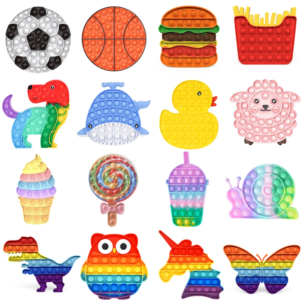Радужная пузырьковая игрушка-антистресс с животными, сенсорные игру...