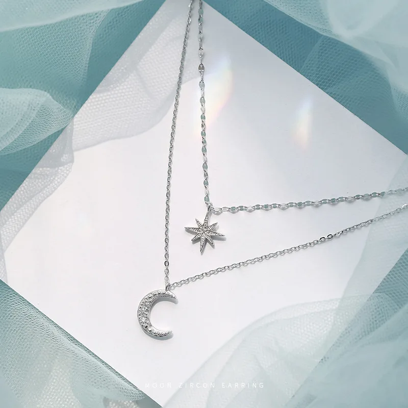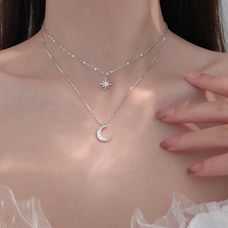 2022 серебряное модное Двухслойное ожерелье со звездой и луной, Женская цепочка для ключицы, ювелирные украшения, вечерние свадебные аксессуары