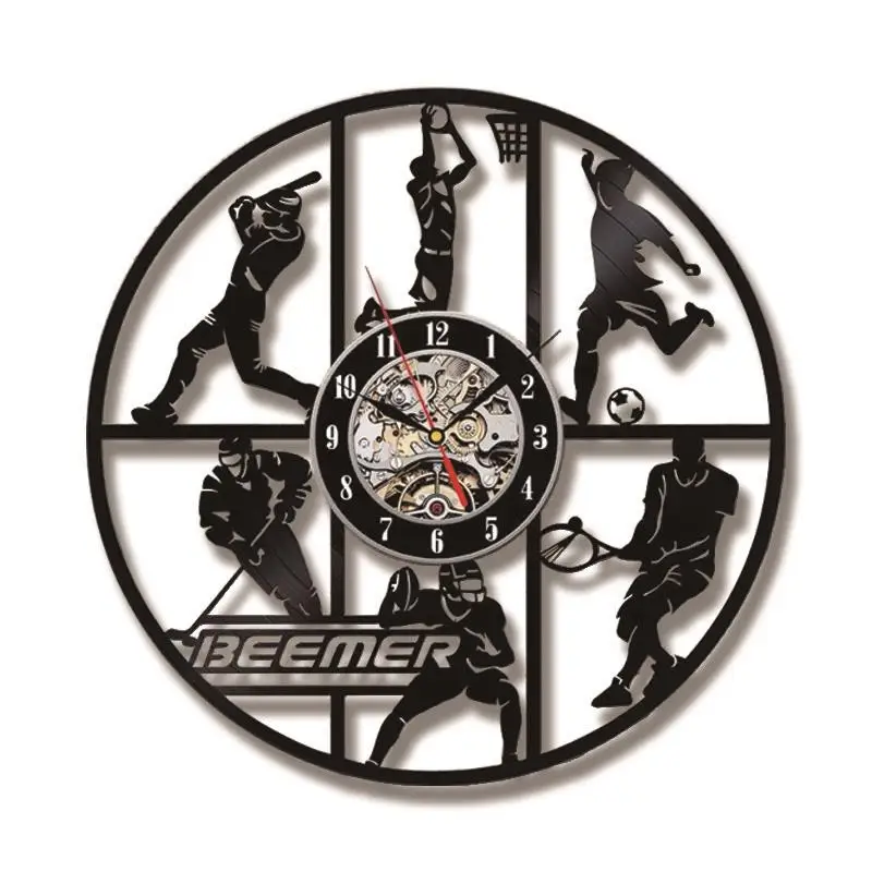 Бейсбол, баскетбол, футбол, хоккей, футбол, теннисные мячи, игра, бесшумные кварцевые виниловые настенные часы, детская комната, спортивные Подвесные часы